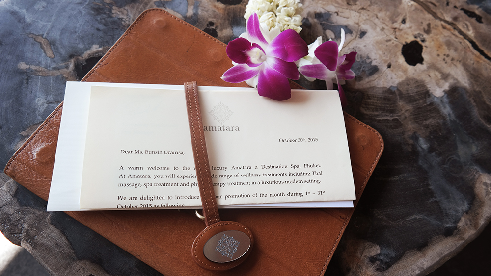 หลังจากทานอาหารเที่ยงเสร็จ พวกเรากลับโรงแรมไปเก็บของและรอออกไปทานอาหารเย็นอีกรอบนึง ทริปนี้เรามาพักกันที่ Amatara Resort & Wellness อย่างหรูฮะ เดินเข้ามาปุ๊ปมี welcome drink มาเสริฟ พร้อมกับพวงมาลัยมะลิและผ้าเย็นชื่นใจ ตรงล็อบบี้เป็นวิวสระว่ายน้ำ infinity ที่มองแล้วเหมือนมันเชื่อมกับทะเลจริงๆ