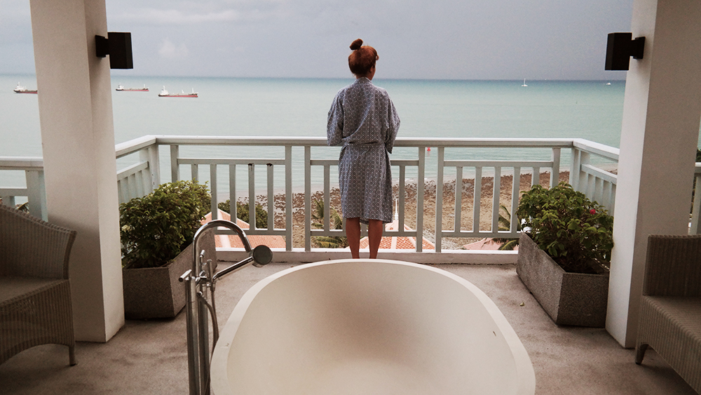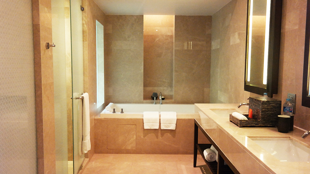 ส่วนห้องพักเรา เป็น Ocean Pavilion เค้าบอกเป็นห้องพักวิวทะเล แต่บังเอิญห้องเราไม่เห็นทะเลเท่าไหร่ เห็นแต่ป่า 5555 ดีกว่าตรงที่ตอนกลางวันนี่ออกมานั่งตรงระเบียงชิลๆ ได้เลย ไม่แดด ไม่ร้อน แถมมีห้องน้ำที่ใหญ่กว่าห้องนอนบ้านเราอีก โฮะโฮะ