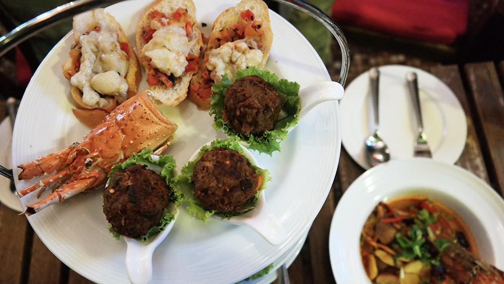 สำหรับอาหาร ที่นี่มีอาหารพื้นเมืองภูเก็ตด้วย แต่วันนี้เรามาทานกุ้งมังกรค่ะ ร้านนี้เค้าเด็ดตรงนี้ กรี๊ดดดด เมนูที่เป็นกุ้งมังกรมีเยอะเลยนะ พล่ากุ้งมังกร , มังกรห่อผ้า , บูเชสต้า , ลาบทอด หรือจะเป็นมาม่าต้มยำกุ้งมังกรก็แซบ