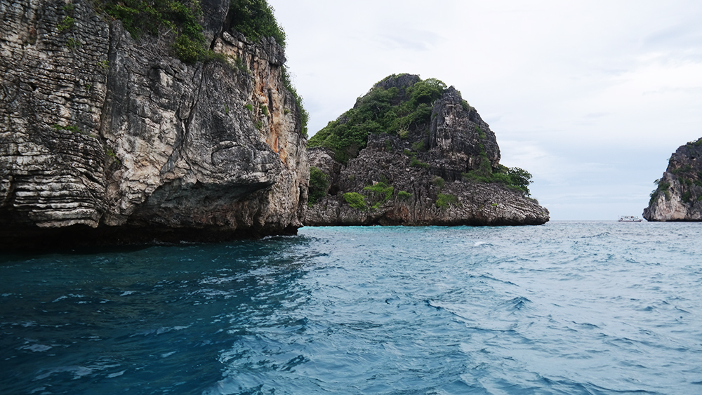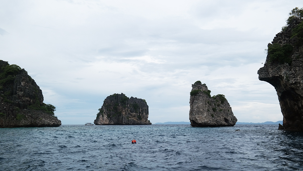 จุดดำน้ำถัดไป เรียกว่าเกาะห้า เพราะว่าตรงจุดนี้มันมี 5 เกาะกระจุกตัวรวมกันอยู่ แต่ว่าพอไปถึงจุดนั้น ท้องฟ้าเริ่มครึ้ม มีคลื่นลมแรงมาก และเมฆดำตั้งเค้าว่าจะวิ่งมาทางเรา พี่ไกด์บอกอันตรายเกินกว่าจะลงในวันนี้ จึงได้แค่ถ่ายรูปจากบนเรือพอ เราว่ามันต้องสวยแน่ๆ ถ้าไม่มีคลื่นนะ เพราะจุดดำน้ำเป็นเวิ้งอ่าวเข้าไปในเกาะ แถมยังมีหาดทรายเล็กๆอีก เอาไว้คราวหน้าก็แล้วกัน
