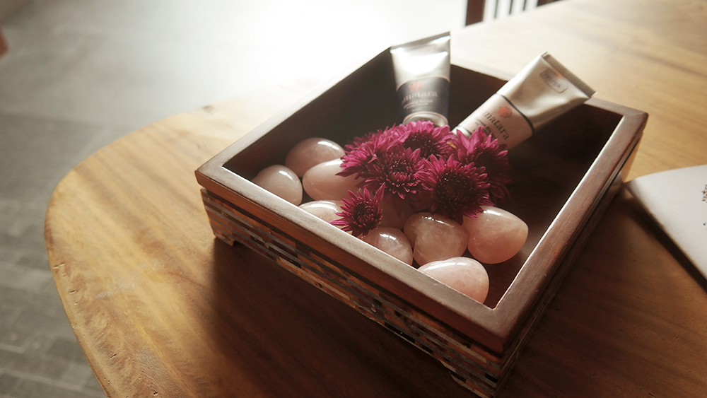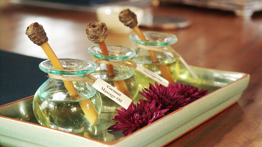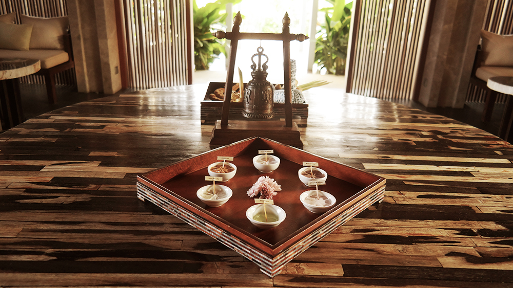 ก่อนอื่น หลังจากเสิร์ฟ welcome drink ต้อนรับเรียบร้อย เค้าจะให้เลือกน้ำมันนวด มี 3 ชนิด เราเลือกแบบ Amatara Signature กลิ่นจะออกไทยๆละมุนๆหน่อย