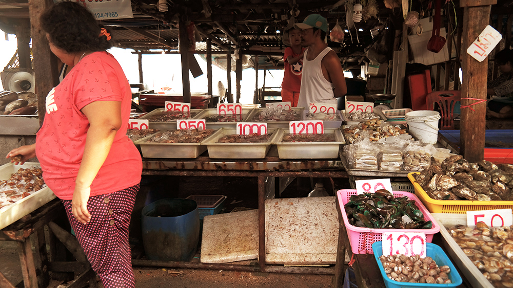 ส่วนของตลาด มีอาหารทะเลขายแบบถู๊กถูก หอยนางรมใหญ่ตัวละ 30-40 บาทเอง พวกปลาหมึก ปลา กุ้ง ปู กุ้งมังกรตัวใหญ่ๆ แบบสดๆเพียบ คือเราสามารถเลือกซื้อ แล้วเอาไปให้ร้านอาหารปรุงให้ได้เลย