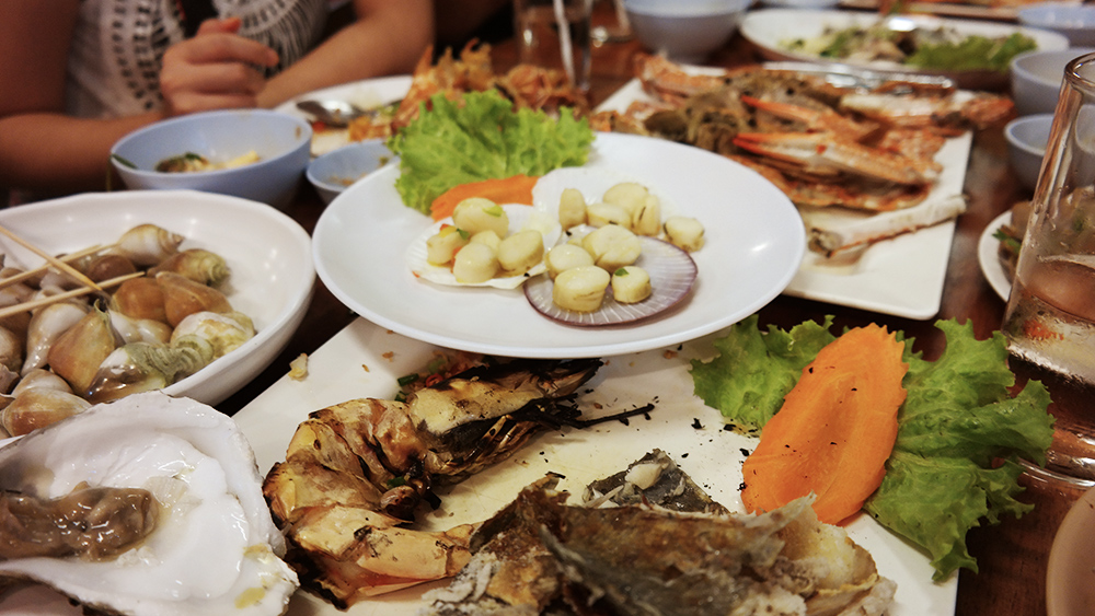 ตอนเย็นไปกินซีฟู๊ด ที่หาดราไวย์ ไม่ใช่หาดสำหรับเล่นน้ำทะเล แต่เป็นหาดที่มีอาหารทะเลเยอะมาก ที่นี่เป็นชุมชนเล็กๆ ชาวบ้านก็นิยมทำประมงกัน บางกลุ่มในนั้นเป็นชาวเลที่เรียกตัวเองว่า อุรักลาโว้ย แปลว่า คนของทะเล เราชอบชื่อนี้นะ มันดูยิ่งใหญ่ดี