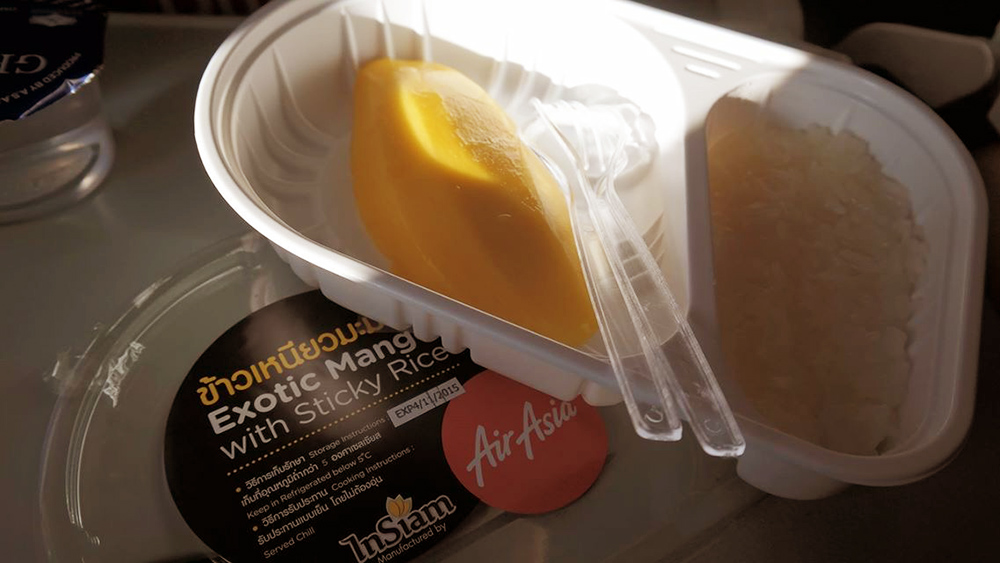 ขากลับก็กลับกับ AirAsia เช่นเดิมค่าาาา ไฟลท์ 16.55 ถึงกรุงเทพก็ถึงเวลาทานอาหารเย็นพอดี ฮ่าๆๆ นี่ก็จะกินตลอดเวลาไปนะ แต่จะว่าไป ทานอาหารคาวมาก็ต้องตบด้วยของหวานปะ บนเครื่องมีข้าวเหนียวมะม่วงค่ะ มะม่วงยังเหลืองๆหวานๆ ไม่ดำด้วย และ berry blast คือเครื่องดื่มที่เพิ่งรู้ว่ามี สั่งตามเพื่อน อร่อยดี มีประโยชน์ กลายเป็นสิ่งที่สั่งทุกครั้งตอนบินกับ AirAsia ไปซะแล้ว