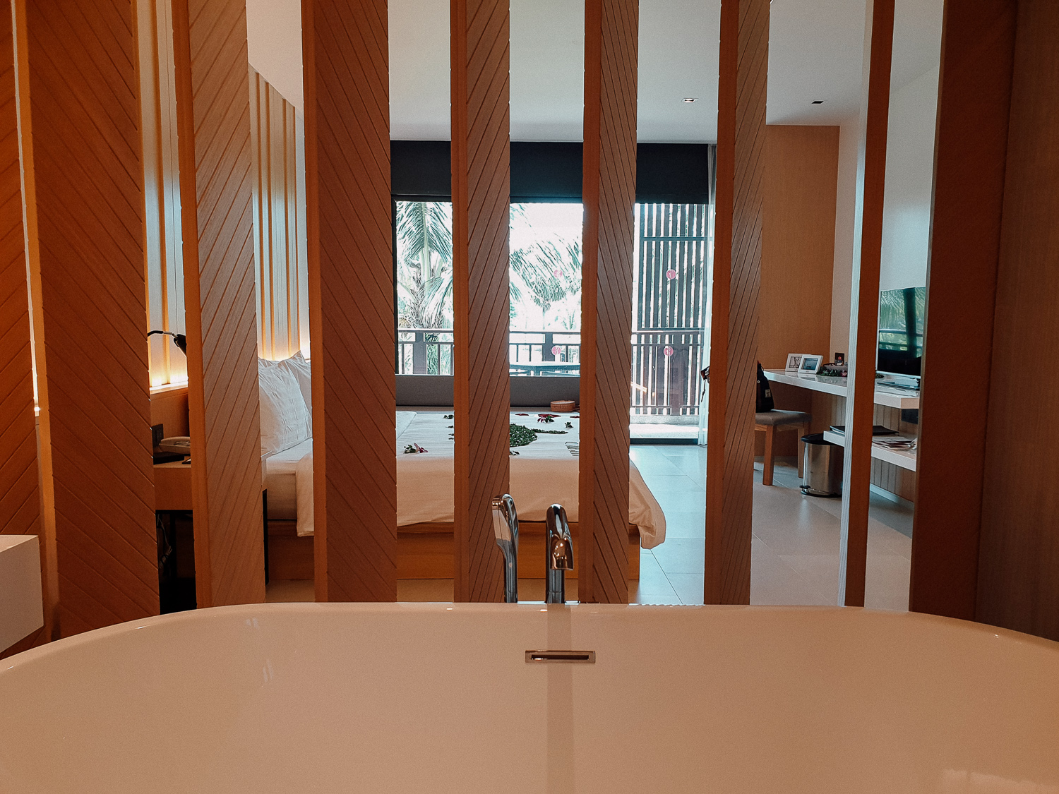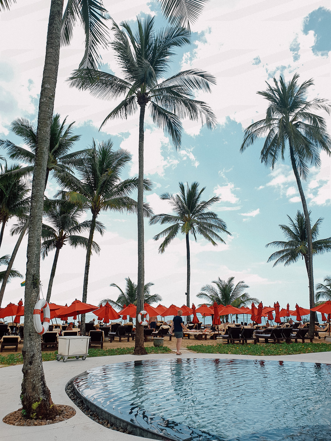 ที่นี่เป็นโรงแรมติดทะเล ริมหาดบางเนียง มีบีชคลับให้นอนชิลระหว่างวัน ร่มแดงๆนี้เอกลักษณ์เค้าเลย
