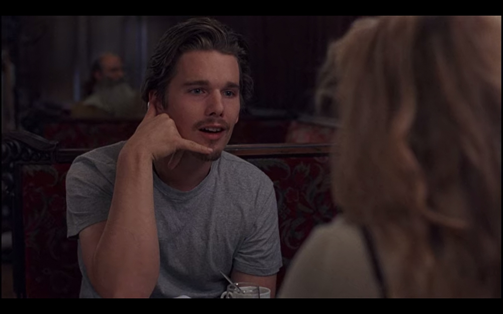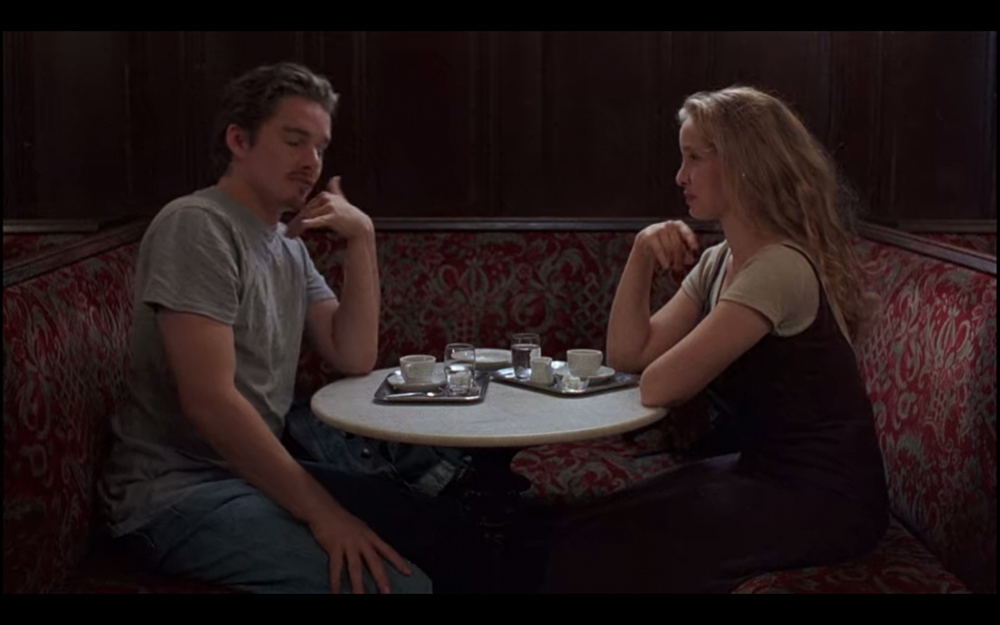 เอาจริงๆ ทั้งเรื่องมีแค่สองคนนี้คุยกัน พูดๆ เดินๆ ไปในมุมต่างๆ ของเวียนนา บทสนทนาในเรื่องก็ไม่ได้เป็นการจีบ สวีท หรือพูดหยอดหวานแหวว มันเป็นคำพูดธรรมดาๆ สัพเพเหระ ความสัมพันธ์ การเมือง ความฝัน ศาสนา ครอบครัว แต่กลับรู้สึกได้ถึงความโรแมนติก ชวนให้เราเองนี่แหละที่ตกหลุมรักตัวละครทั้งสอง ดูจบปุ๊ป คืออยากออกเดินทางขึ้นรถไฟทันทีเลย (นั่งรถไฟแล้วบังเอิญเจอพระเอกที่หน้าตาแบบ Ethan Hawke ตอนปี 1995 ด้วยนะ)