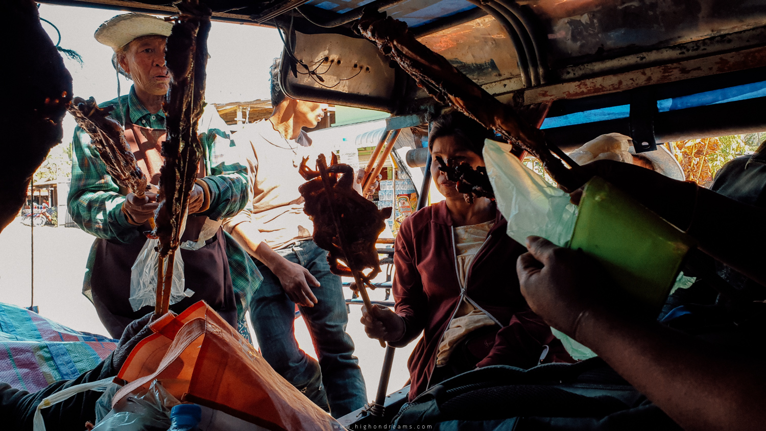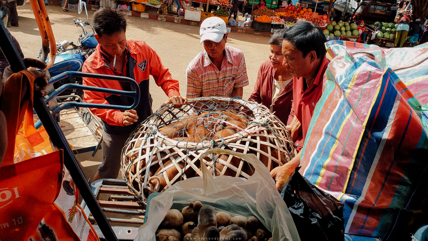 จากปากเซ เรานั่งรถขนหมูมาลงที่บ้านนากะสัง ใช้เวลาประมาณ 4 ชม. ระยะทาง 144 กม. การนั่งรถโลคอลก็ไม่แย่นะ วาไรตี้มาก มีทั้งไก่ตัวเป็นๆ ทั้งลูกหมูอีก 10 ตัว กับป้าชาวลาวอารมณ์ดี