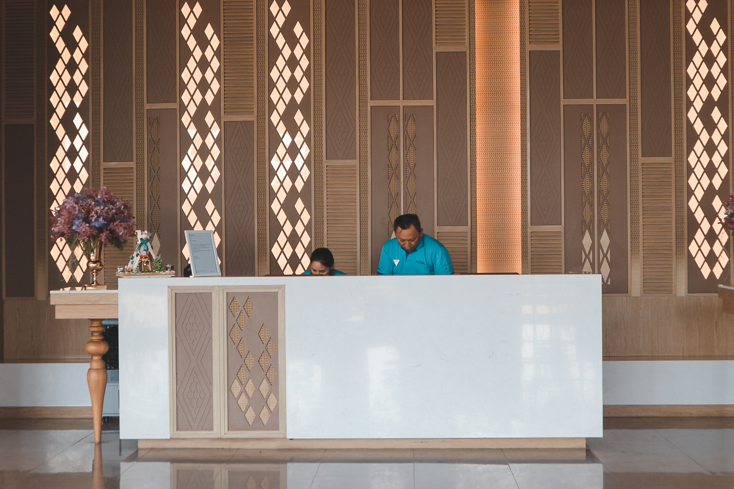 ขับรถออกมาจากกรุงเทพไม่กี่ชั่วโมงก็มาถึงโรงแรมแล้ว จากถนนใหญ่มองเข้ามาเห็นป้าย AVANI บนตึกเตี้ยๆ นึกว่าจะเป็นโรงแรมเล็กๆ แต่พอเข้ามาแล้วถึงกับร้องโอ้ววววว มันไม่เล็กเลยนะคะ เค้าว่า 32 ไร่เลย ดีไซน์โถงล็อบบี้แบบโมเดิร์น+ทรอปิคอล จากการใช้สีโทนอบอุ่น ผสมด้วยไม้และพรมลายใบบัวใหญ่ ที่เราชอบมาก อยากเอามาไ้ว้บ้าน (แต่ที่ไม่น่าจะพอ)
