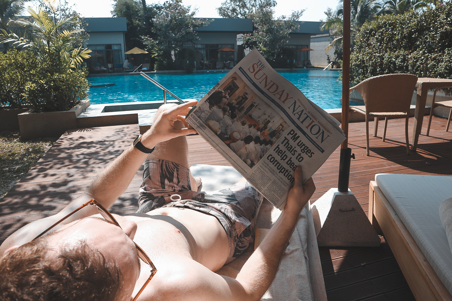ครั้งนี้เราตั้งใจมาพักผ่อนแบบจริงๆ อยากหนีหนีเสียงรถที่เมืองกรุง อยากทิ้งตัวลงบนเตียงนุ่มๆ อยากว่ายน้ำจนตัวเปื่อย บ่ายๆก็หยิบหนังสือที่ซื้อเก็บไว้ตั้งแต่สองปีที่แล้วขึ้นมาอ่าน พอหิวก็สั่งอะไรอร่อยๆมากิน ชีวิตดีๆในแบบของเราอะ มีแค่นี้จริงๆ