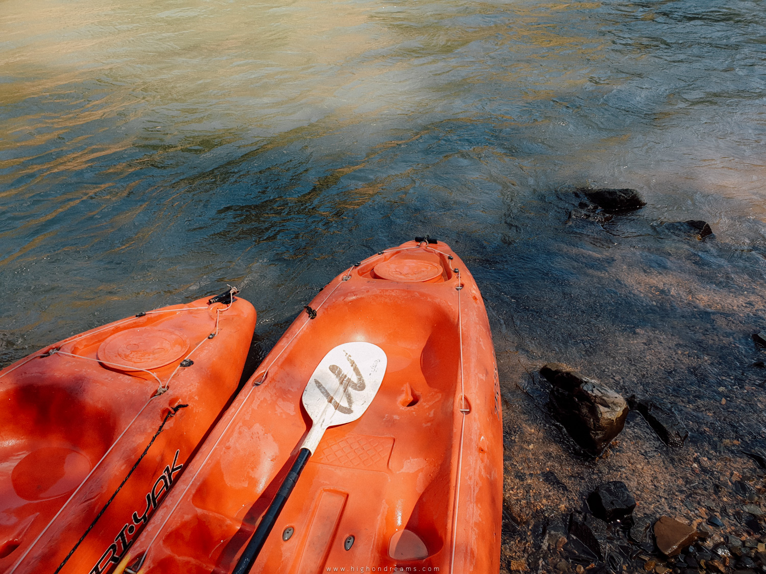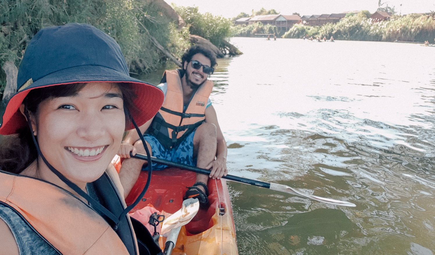 เริ่มด้วยพายเรือคายัค ไกด์ให้จับคู่ Buddy ต่อ 1 เรือ Buddy เราคือ Daniel เพื่อนร่วมโฮสเทลเดียวกัน มาจากประเทศอิสราเอล ตอนแรกก็คิดว่าจะพายเรือกันชิลๆ สวยๆ แหละ ที่ไหนได้ มันคือ Rapid River จ้าาาาา เหมือนล่องแก่งอะ พายในกระแสน้ำเชี่ยว ไม่ทันได้เตรียมตัวเตรียมใจเท่าไหร่ กลัวจะบังคับเรือไม่ได้แล้วไหลไปตกน้ำตกหลี่ผี มีคนเรือล่มด้วย ไกด์ต้องพายไปช่วย โชคดีที่ Buddy เราพายเก่ง 555 เก่งที่สุดในกรุ๊ปแล้วจ้า