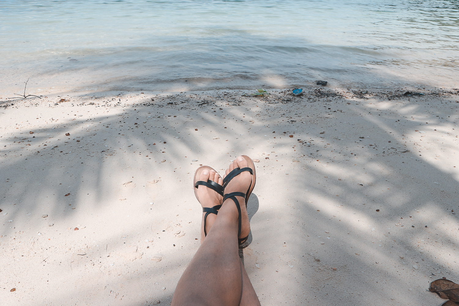 น้ำใสแจ๋ว และแดดก็แรงมากเช่นกัน ถามว่ากลัวแดดมั้ยล่ะ