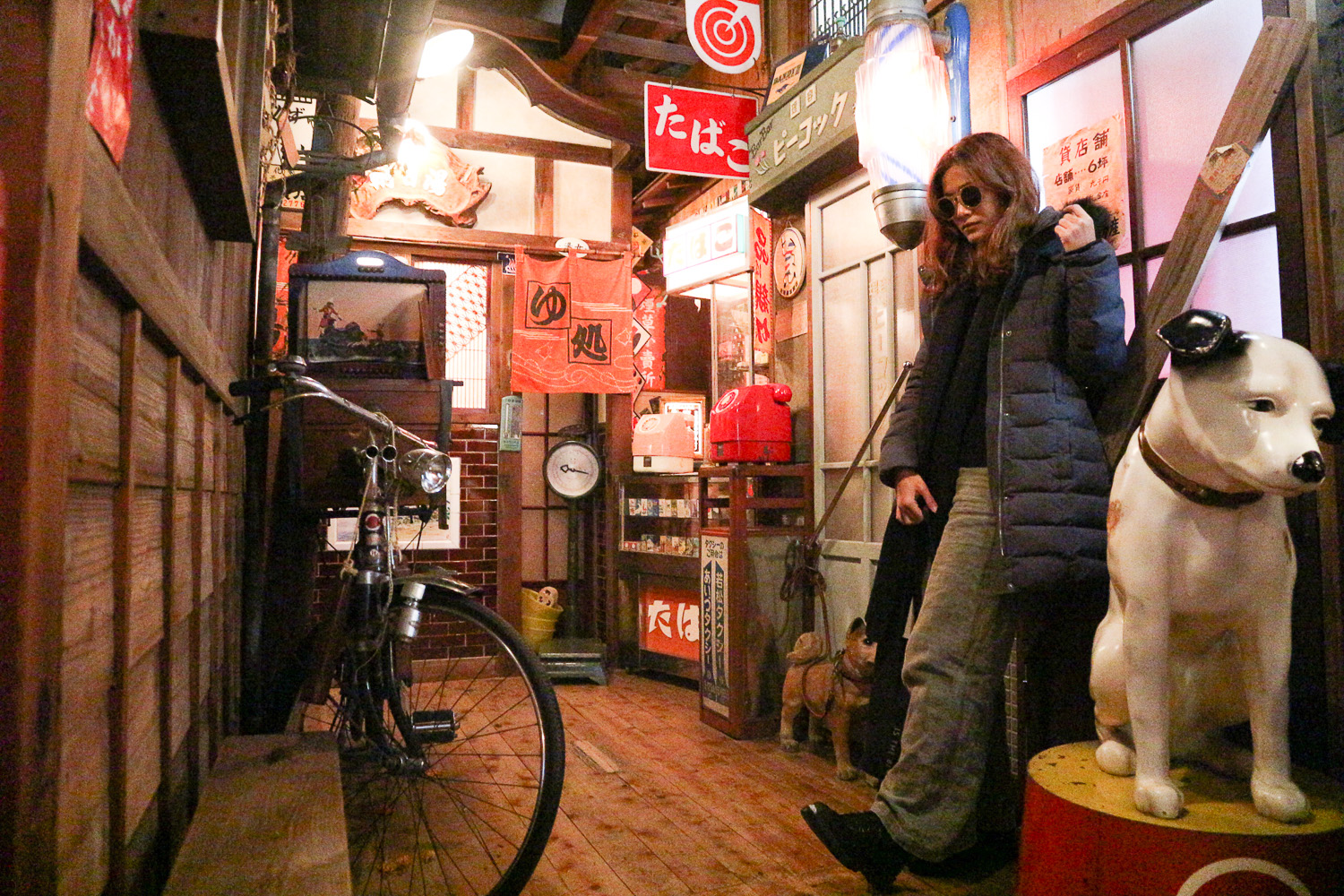มาเดินเล่นในเมืองกันต่อฮะ ไม่ไกลจากบ้านด๊อกเตอร์ มีร้านขายของเก่า ที่เราแวะเข้าไปว่าจะซื้อของฝากเล็กๆน้อยๆ แต่ปรากฎว่า ที่นี่ไม่ได้น้อยอย่างที่คิด ชั้นล่างขายของเก่าก็จริง แต่ชั้นสองทำเป็นแกลอรี่ นำของเก่า ของสะสม มาจัดตกแต่งให้เป็นเรื่องราว มีทั้งห้องนั่งเล่น ร้านค้า ซาลอน ร้านราเมง โรงหนัง นี่เลยได้เดินดู เดินถ่ายรูปอย่างเดียว ของฝ่งของฝากไม่ได้ซื้อละ 5555