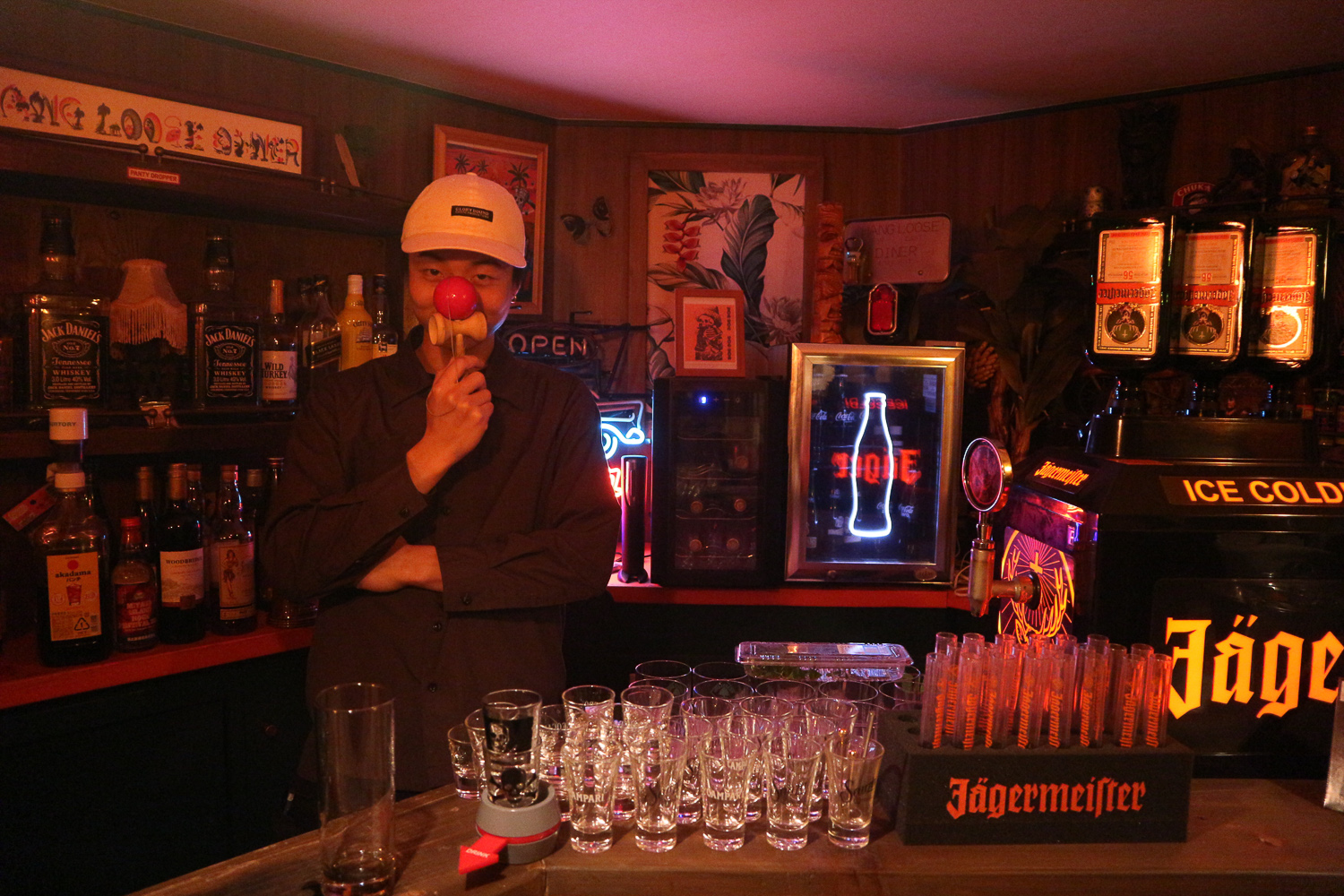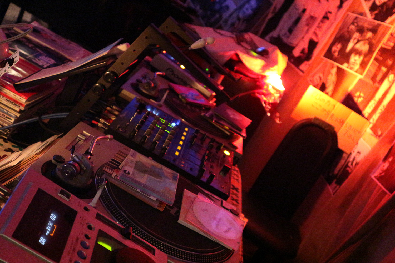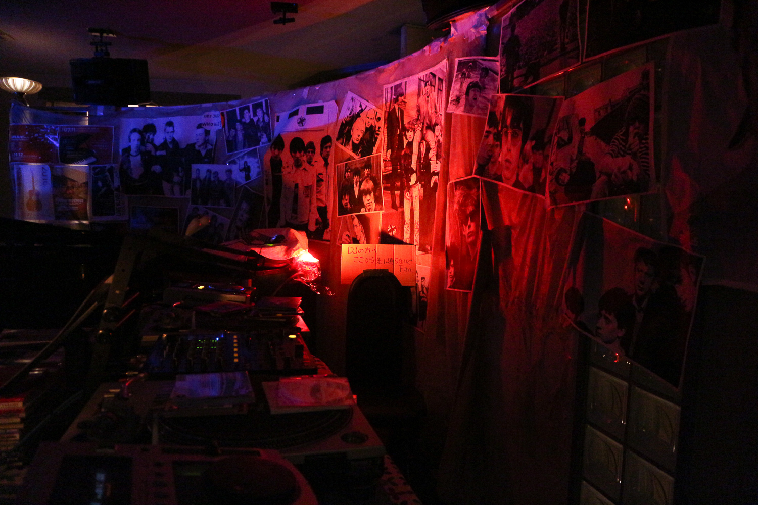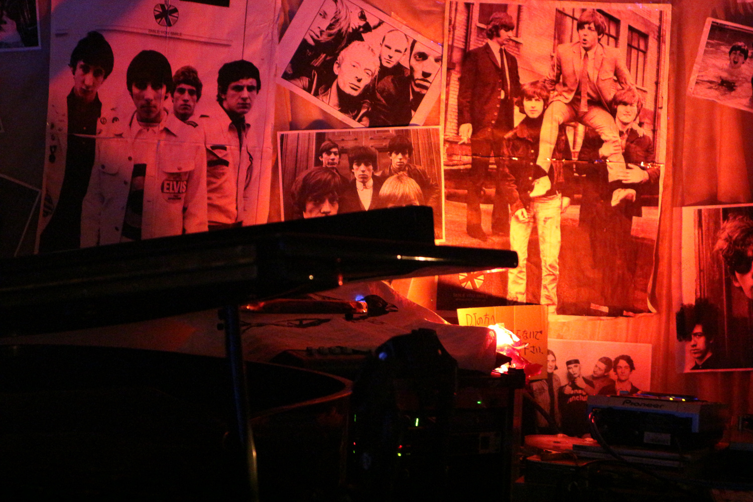 ร้านนี้เราสุ่มเจอจากโลเคชั่นในอินตาแกรม กดเช็คอินสถานที่ ร้านนี้ก็ขึ้นมา เพราะมันอยู่แถวนี้นี่เอง มันเป็นร้านที่คูลมากก มีเปียโนตั้งอยู่กลางร้าน มีโปสเตอร์วงโปรดติดเต็มผนังไปหมด พร้อมไฟแดงๆ แรงๆ กับเครื่องเล่นแผ่นเสียงเท่ๆ แล้วเพิ่งรู้ว่าเค้าจัดมินิคอนเสิร์ตแทบจะทุกอาทิตย์ ดูจากโปสเตอร์อะนะ ถ้าได้มาตอนปาร์ตี้ต้องมันส์แน่ๆ แต่พอวันที่ไม่มีงาน เช่นวันนี้ มันเลยเหงาๆ มีแค่พวกเรากับเจ้าของร้านเอง