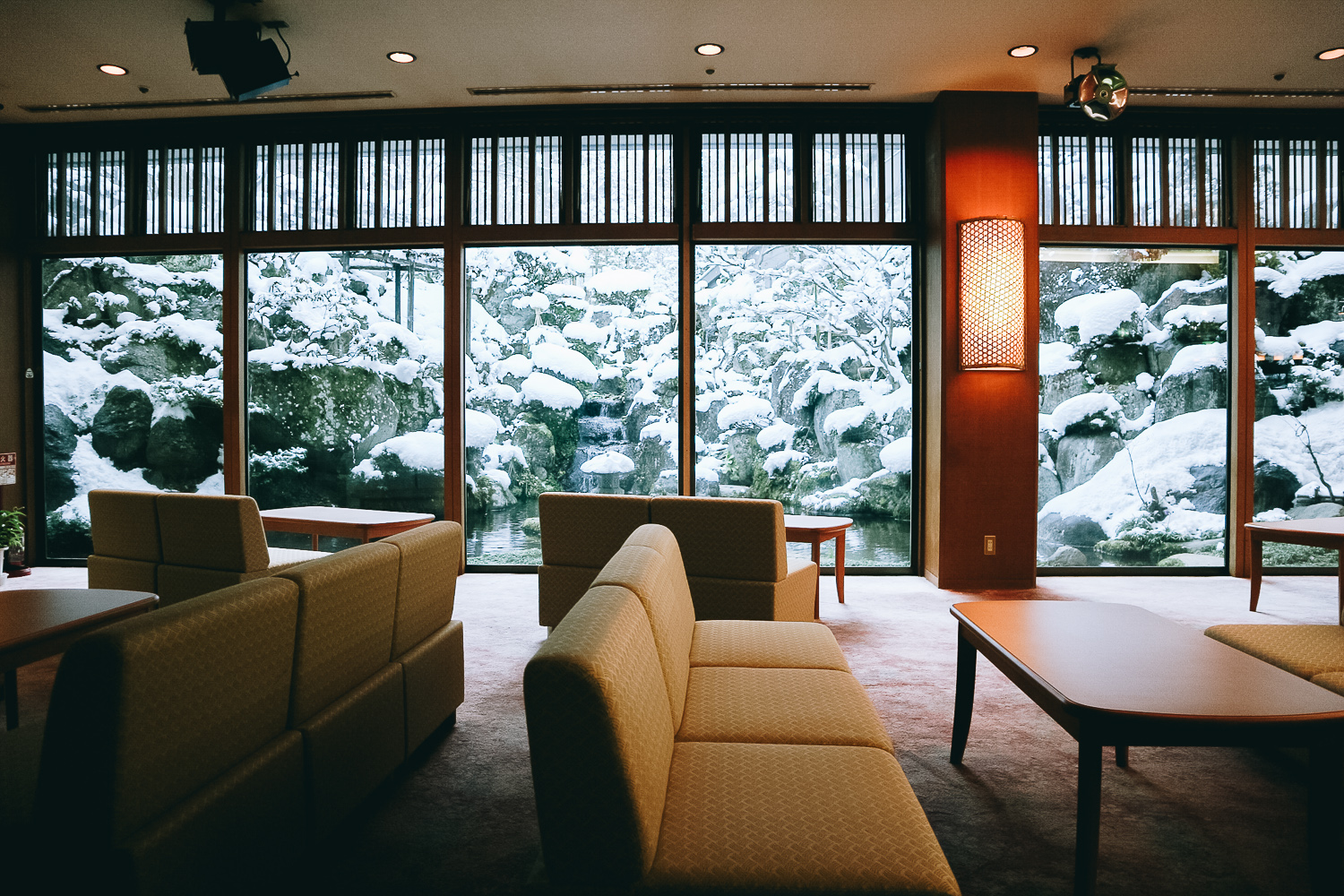 ที่นี่เป็นออนเซนรีสอร์ทตกแต่งสไตล์ญี่ปุ๊นญี่ปุ่น ตั้งอยู่ริมแม่น้ำ Ara และอยู่ในหมู่บ้านกลางหุบเขา!! ได้ยินแค่นี้ก็รู้สึกเจ๋งแล้ว มีห้องออนเซนเยอะถึง 5 ห้องทั้งของผู้หญิง ผู้ชาย INDOOR OUTDOOR ห้องรวม และกึ่งรวม คือมันจะมีเวลาสำหรับผู้ชายเวลานี้ และผู้หญิงอีกเวลานึง เพราะว่าแต่ละออนเซนมีบรรยากาศไม่เหมือนกัน เลือกแช่ได้ตามใจชอบเลย ภาพในออนเซนเราอาจจะไม่มีให้นะ เพราะเค้าห้ามถ่าย แต่ลองดูวิวจากหน้าต่างล๊อบบี้ตั้งแต่ทางเข้าสิ ว่ามันเวิคขนาดไหน หิมะและน้ำตกเบาๆ วิวแบบนี้แหละที่เราจะได้เห็นในออนเซน
