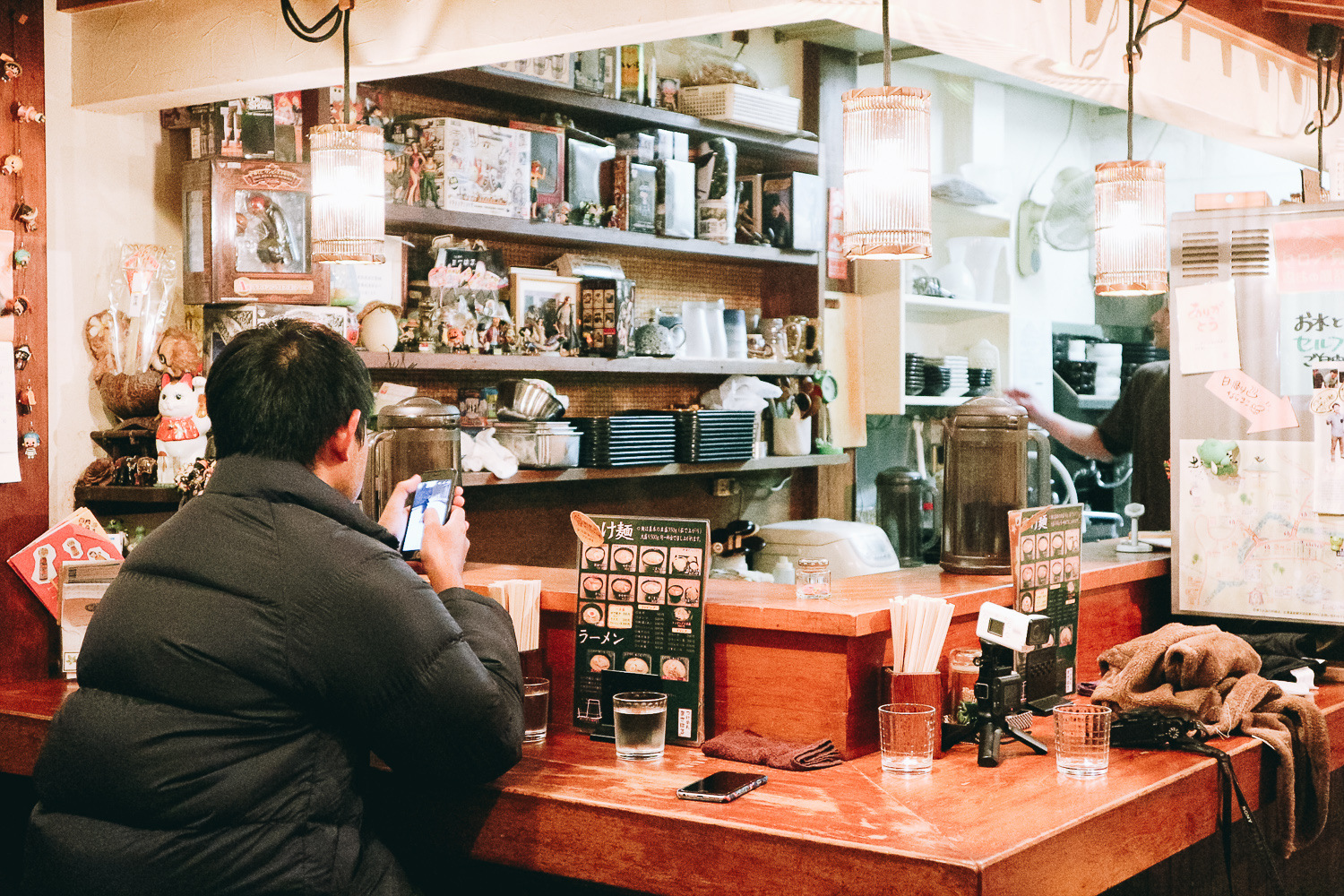 คาเฟ่ร้านแรกที่เราเข้าไปหลบอากาศหนาว เราบังเอิญเจอจากป้ายสแตนดิ้งเล็กๆหน้าร้านเบียร์สด 199เยน (สารภาพกันตรงนี้ว่าเห็นป้ายร้านเบียร์ก่อน 555) เห้ยย เบียร์โคตรถูกอะ แค่นี้คือยังกลางวันแสกๆไง เก็บไว้ก่อน จุดหมายเราคือร้านกาแฟ