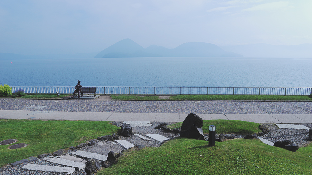 ทะเลสาบโทยะ ที่มองเห็นจากห้องของโรงแรมที่พักเลย เราว่าเป็นทะเลสาบ ที่เท่ที่สุดที่เคยเห็นละนะ เพราะถ้าดูจากแผนที่ มันเป็นทะเลสาบทรงกลม ที่มีเกาะกลางเป็นวงกลมอีกชั้น กลางทะเลสาบเลย เหมือนรูปโดนัทมีรูตรงกลางยังไงยังงั้น มีกิจกรรมทั้งปั่นเป็ด ล่องเรือ หรือข้ามไปเกาะกลางก็ได้ ทริปนี้เราไม่ได้ข้ามไปค่ะ