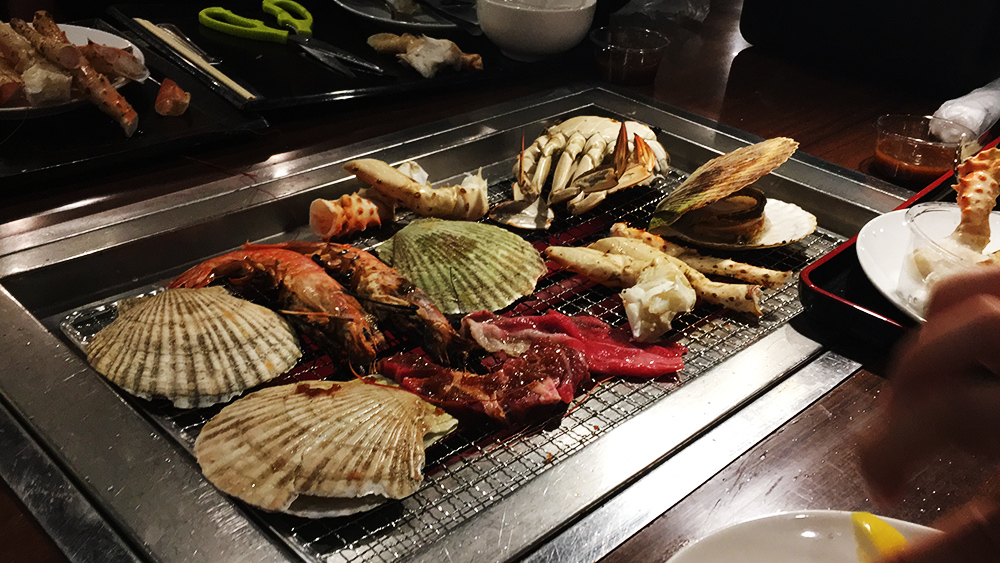 ออกเดินทางเข้าเมืองใหญ่ซัปโปโร เมืองสุดท้ายของทริปนี้ และอาหารมื้อหนักที่เด็ดที่สุด ถูกใจที่สุดในทริปนี้ (สำหรับเรานะ) คือ บุฟเฟ่บาบิคิว NANDA อลังการงานสร้าง รวมทุกของเด็ดเมืองฮอกไกโดไว้ที่นี่ที่เดียว ทั้งเนื้อวัว 4A เนื้อแกะ ปูอลาสก้า ปูขน หอยนางรม ตัวใหญ่ แต่หอยเชลใหญ่กว่า ปิ้งย่างกันให้อิ่ ใน 1 ชั่วโมง ถามว่าอิ่มมั้ย ก็อิ่มนะ แต่ถามว่าพอมั้ย ยังไม่พอค่ะ ฮ่าๆๆ อยากกินอีก ส่วนน้ำจิ้มไม่ต้องกลัวไม่อร่อย เพราะไกด์เน็ทได้เตรียมน้ำจิ้มซีฟู๊ดมาให้พวกเราเรียบร้อยแล้ว แฮร่ๆ