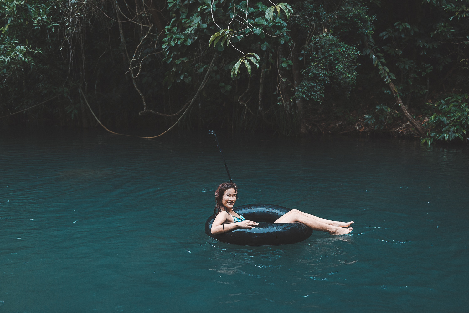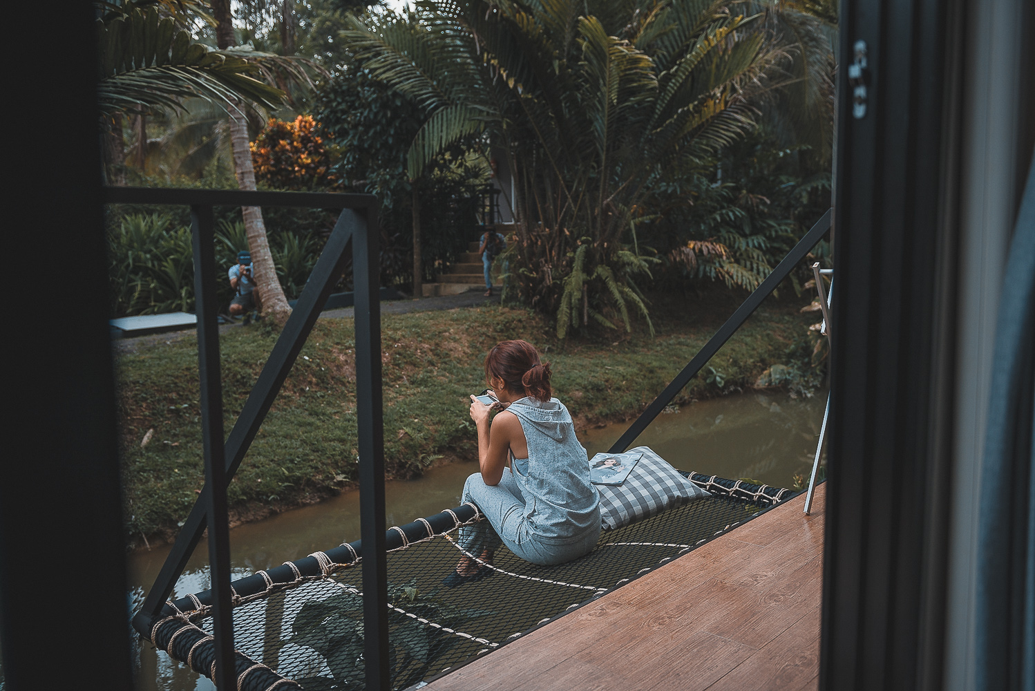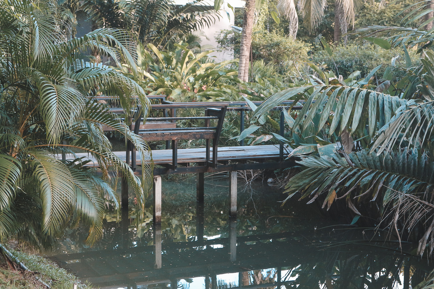 เดินเข้าไปข้างในอีกนิดจะเห็นคลองน้ำสีเขียวใส พร้อมชานไม้และเก้าอี้ชายหาด ชอบตรงที่มันไม่ได้เป็นแค่ที่พักอย่างเดียว แต่ยังมีกิจกรรมสนุกๆ ให้ทำอีกด้วย เราสามารถเข้าไปโดดน้ำ ว่ายน้ำ รวมถึงพายคายัคได้ด้วย คืออยู่แค่รีสอร์ทอย่างเดียวทั้งวันก็ได้อะ ฮ่าๆๆ ส่วนระดับน้ำในคลองลึกประมาณ 1.5 เมตร จากป้าย แต่มันขึ้นอยู่กับวันที่ไปด้วย บางวันหลังฝนตกน้ำจะเยอะ เช่นตอนเราไปนี่ก็ท่วมหัวมิด โดดจากชานไม้ได้สบายเท้าไม่แตะพื้นค่ะ ใครว่ายน้ำไม่เป็นมีชูชีพและห่วงยางบริการด้วย