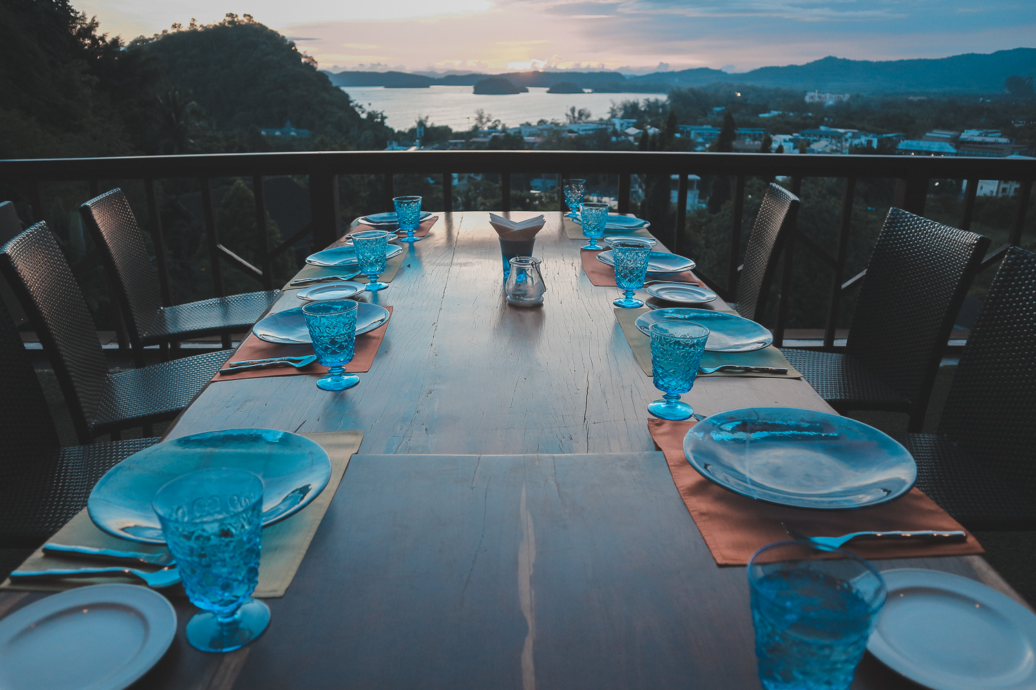 เล่นน้ำจนเหนื่อย ก็ได้เวลาอาหารเย็น มีคนแนะนำให้มาร้านนี้ “เขาทองเทอเรส” ร้านตั้งอยู่บนควน (ควน = เนิน ภาษาใต้วันละคำ 555) มองเห็นวิวทะเลกระบี่ และเกาะเล็กเกาะใหญ่เต็มไปหมด ยิ่งตอนพระอาทิตย์กำลังจะตกดินด้วยแล้ว แสงทองสวยมาก