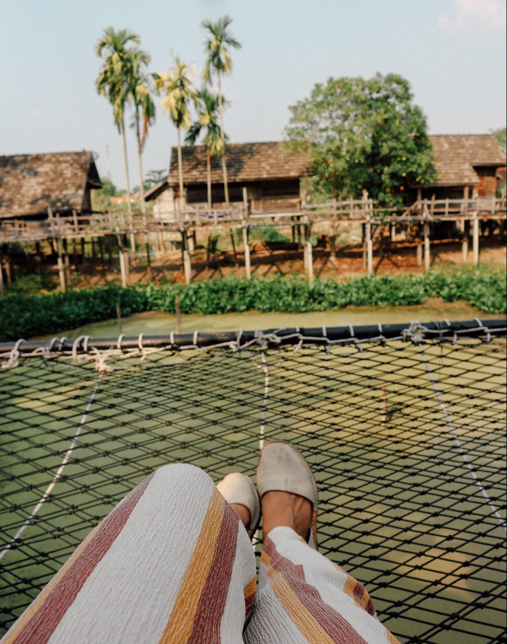 คือที่นี่เป็นบ้านพักไม้ล้อมรอบบ่อน้ำเขียวๆมีเปลมีชานนั่งบนน้ำดูชิวมากๆต้นหมากนั้นก็ดูเหมือนต้นมะพร้าวเลยฟีลยังกับบ้านบนเกาะแต่ป่าวจ้านี่บ้านบนคลองขุดบ้านน่ารักดีเป็นบ้านไม้ พัดลม ถ้ามานอนช่วงหน้าหนาวคงอากาศดี