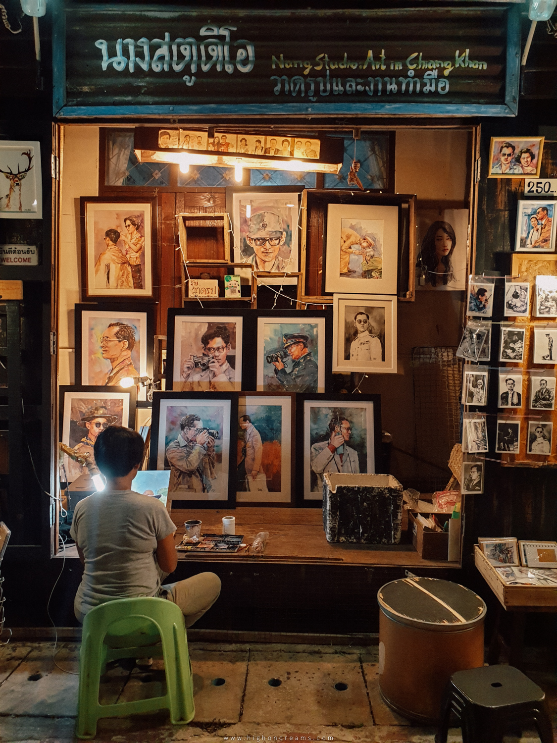 เดินๆอยู่ก็สะดุดตากับร้านนี้ “นางสตูดิโอ” ขายภาพวาดสีน้ำและโปสการ์ดเป็นของที่ระลึกนอกจากนั้นยังรับวาดภาพเหมือนด้วยนาพี่แกกำลังนั่งลงสีอยู่ข้างหน้าร้านนี่แหละ