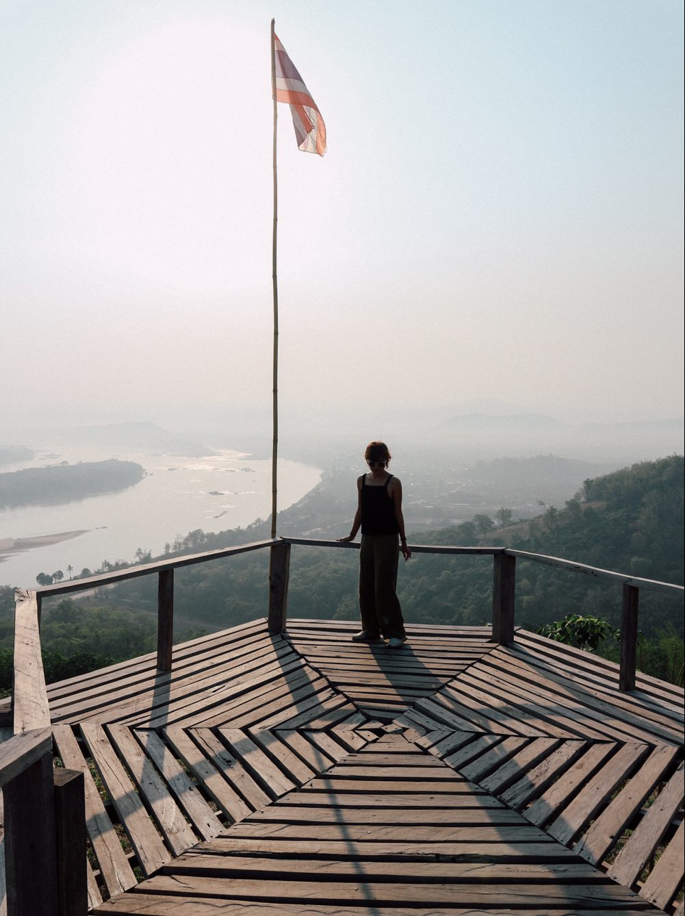 เราไม่ได้มาตอนพระอาทิตย์ขึ้นหรอกเพราะตื่นไม่ทันแต่ก็ยังถือว่าเช้าแหละหมอกยังลอยคลุ้งๆอยู่วิวข้างบนคือดีงามมมมพระรามเก้าสามารถมองเห็นคุ้งน้ำโขงและเกาะแก่งต่างๆมองข้ามน้ำโขงก็เป็นฝั่งลาวแล้วภูเขาฝั่งลาวรูปทรงเท่มากเห็นแล้วอยากลองข้ามไปฝั่งลาวเลย