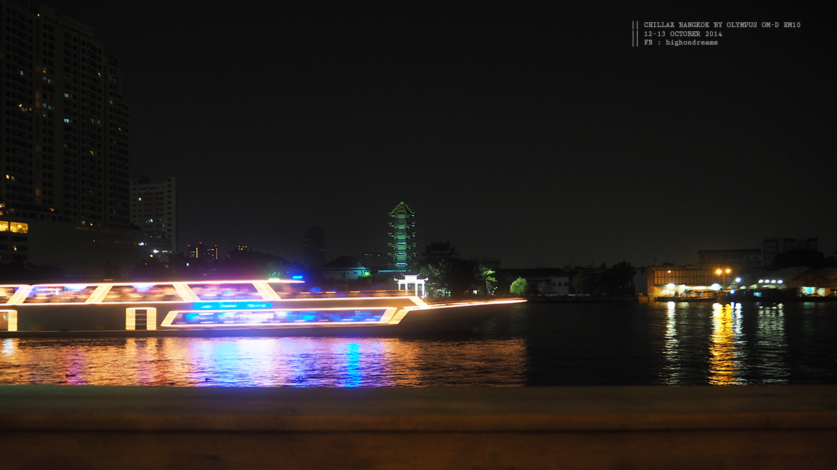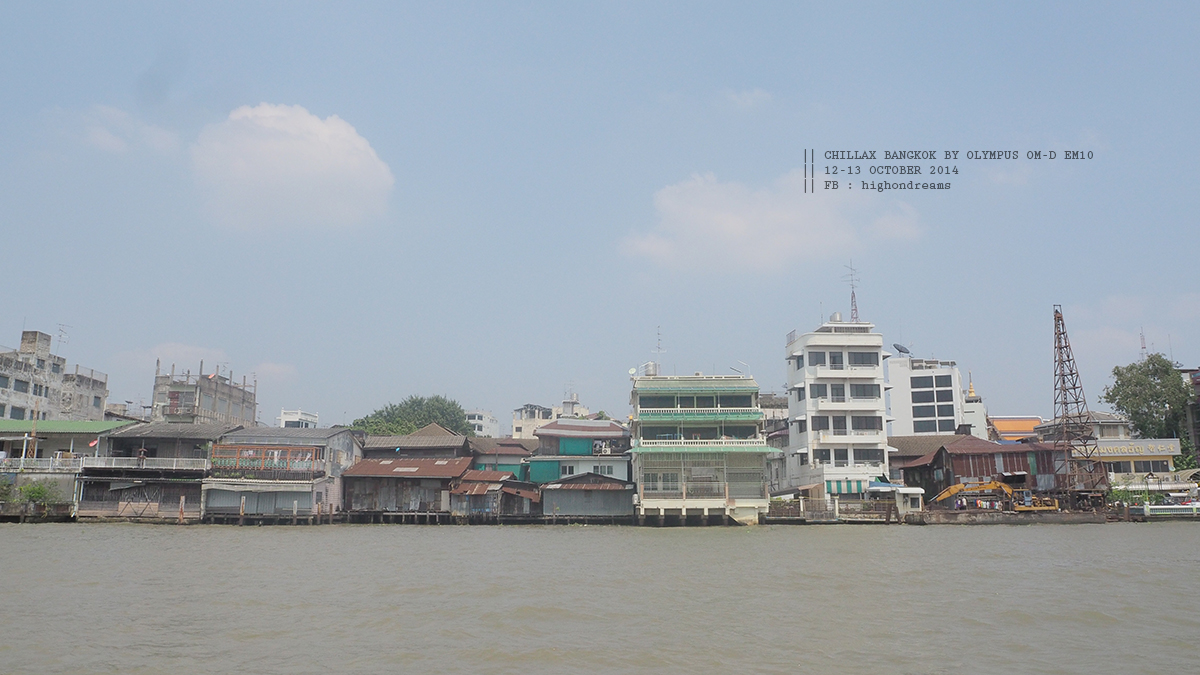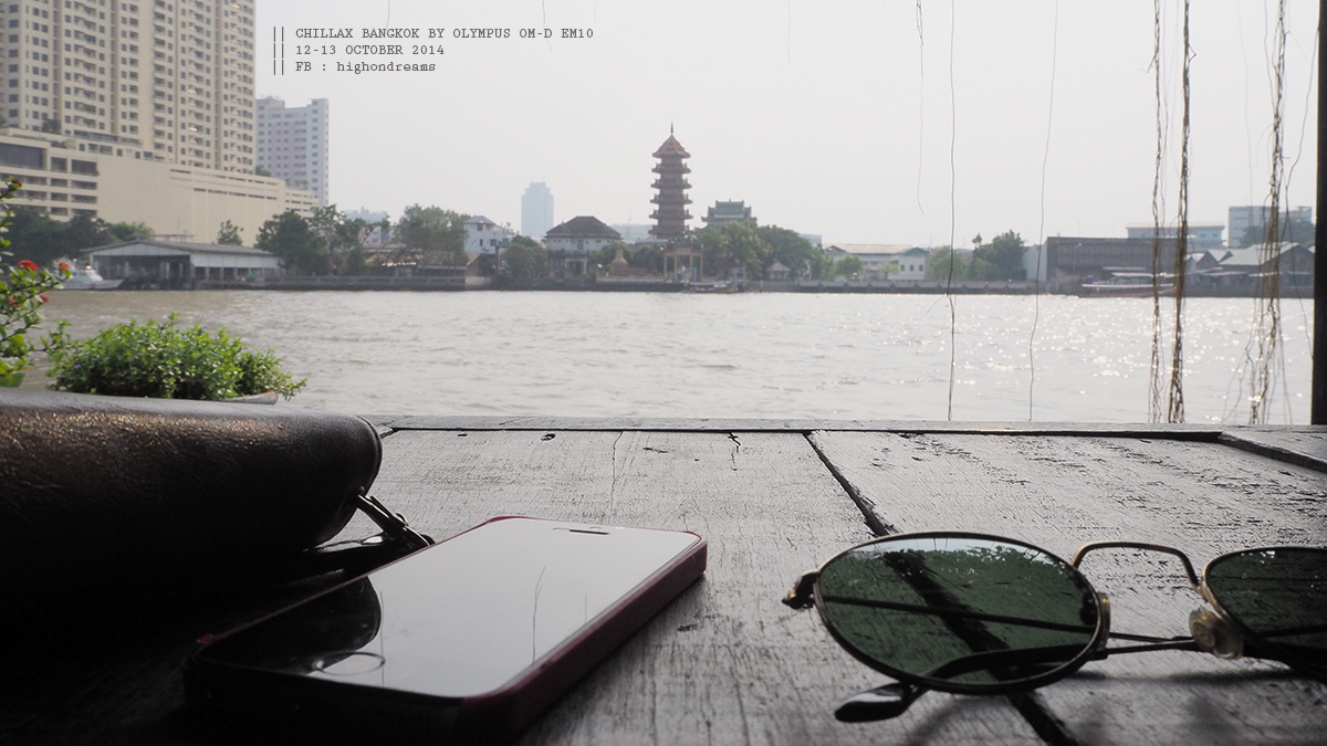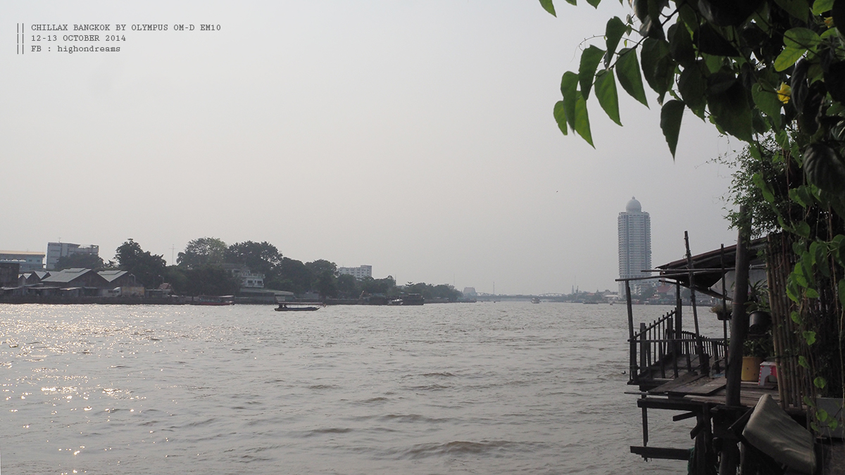 สูดหายใจเบาๆ หนึ่งที แล้วมองวิวที่อยู่ตรงหน้า กรุงเทพก็ยังเป็นกรุงเทพอยู่วันยันค่ำ (ก็แน่สิ จะให้เป็นอะไร) กลางคืนมีเรือคาราโอเกะ กลางวันก็เรือด่วน ล่องมาไม่ขาดสาย ไหนจะเรือตำรวจอีก มันวุ่นวายจริงๆ แต่มันไม่ได้มีปัญหาอะไรกับเราหรอก ตราบใดที่เราไม่ได้ลงไปว่ายน้ำอะนะ