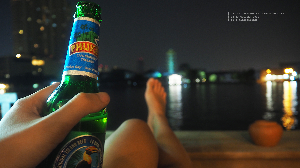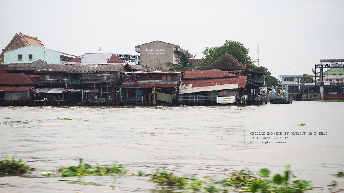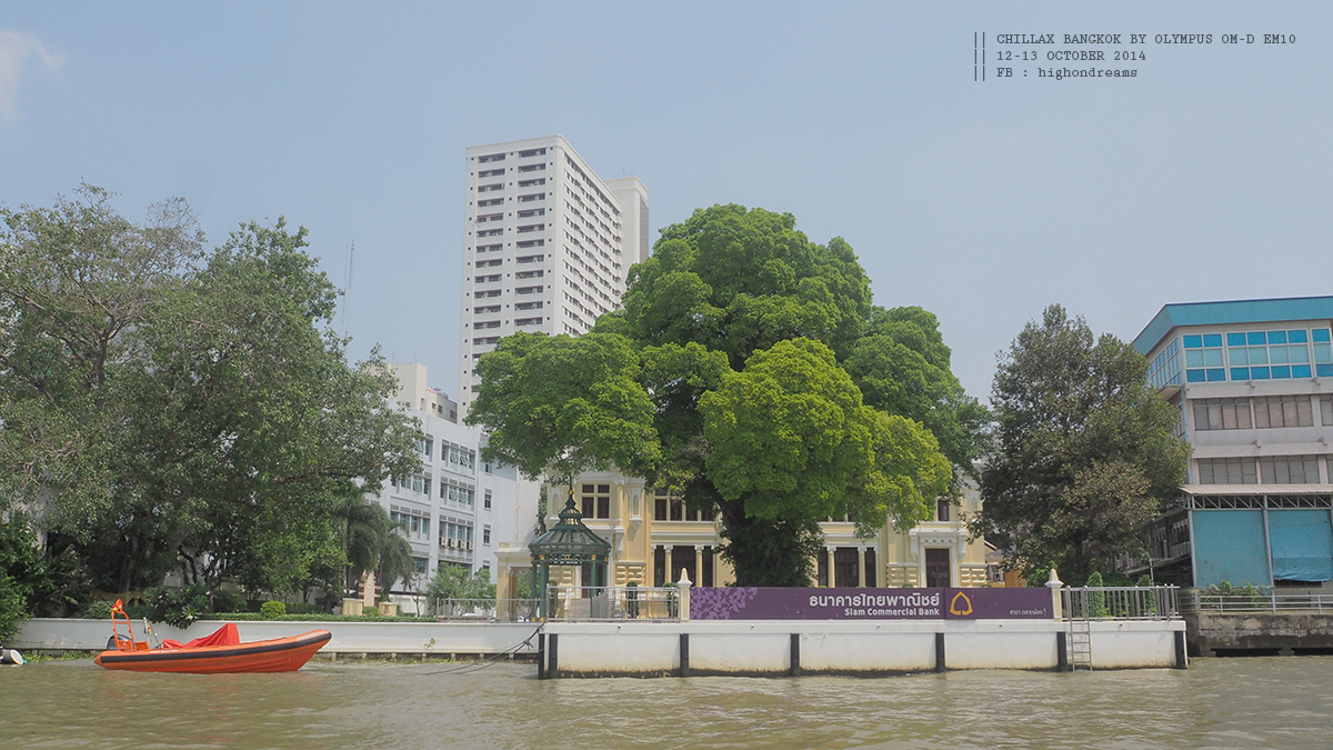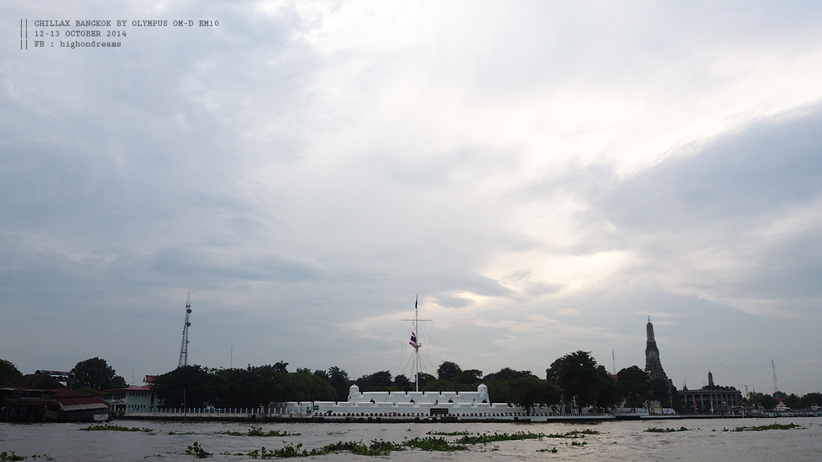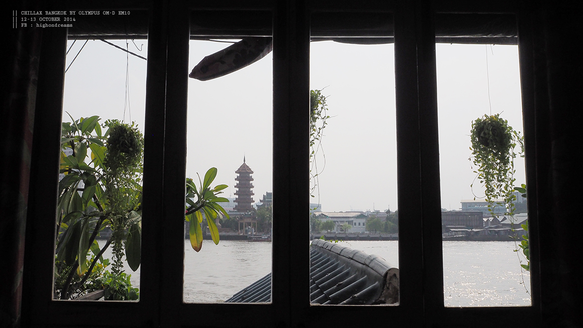 สูดหายใจเบาๆ หนึ่งที แล้วมองวิวที่อยู่ตรงหน้า กรุงเทพก็ยังเป็นกรุงเทพอยู่วันยันค่ำ (ก็แน่สิ จะให้เป็นอะไร) กลางคืนมีเรือคาราโอเกะ กลางวันก็เรือด่วน ล่องมาไม่ขาดสาย ไหนจะเรือตำรวจอีก มันวุ่นวายจริงๆ แต่มันไม่ได้มีปัญหาอะไรกับเราหรอก ตราบใดที่เราไม่ได้ลงไปว่ายน้ำอะนะ