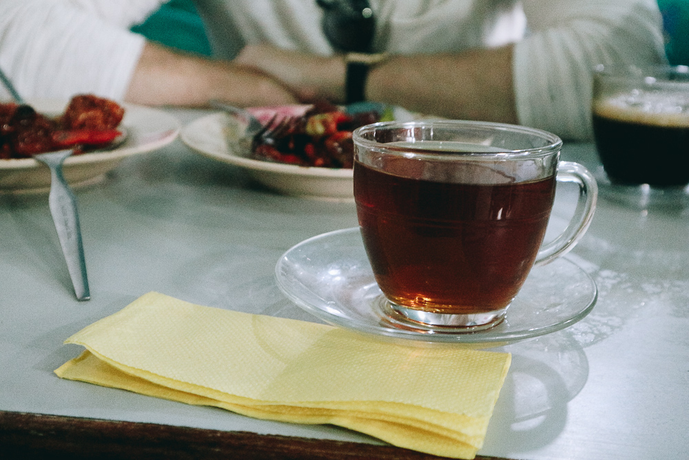 เราแวะเข้าร้านโลคอลร้านนึง มีกำแพงสีฟ้า ใกล้ๆท่าเรือ JETTY 1 ด้วยความอยากรู้ อยากลอง บวกกับความหิว เพราะไม่ได้กินอะไรแต่เช้า ก็เลยเดินเข้าไปกิน มันก็คล้ายๆร้านข้าวราดแกงแหละ จิ้มเอาว่าจะเอาอะไร เราเลือกเป็นผัดปลาอะไรไม่รู้ กับผัดอะไรไม่รู้ 5555 แต่จะบอกว่ารสชาติมันได้อยู่นะ ตอนแรกคิดว่าจะเหมือนอาหารอินเดีย เลี่ยนๆหน่อย แต่ปล่าวเลย มันมีรสชาติกว่า ถูกลิ้นกว่า มีความหวานเค็มเผ็ดดี เสียอย่างเดียวแค่ไม่รู้ว่ามันคืออะไรรู้แค่ว่าเป็นปลา ทานกับชาร้อนก็อร่อยดี แล้วอิชาร้อนนี่ก็สั่งตามโต๊ะข้างๆ รู้สึกโคตรโลคอลเลยตอนนี้