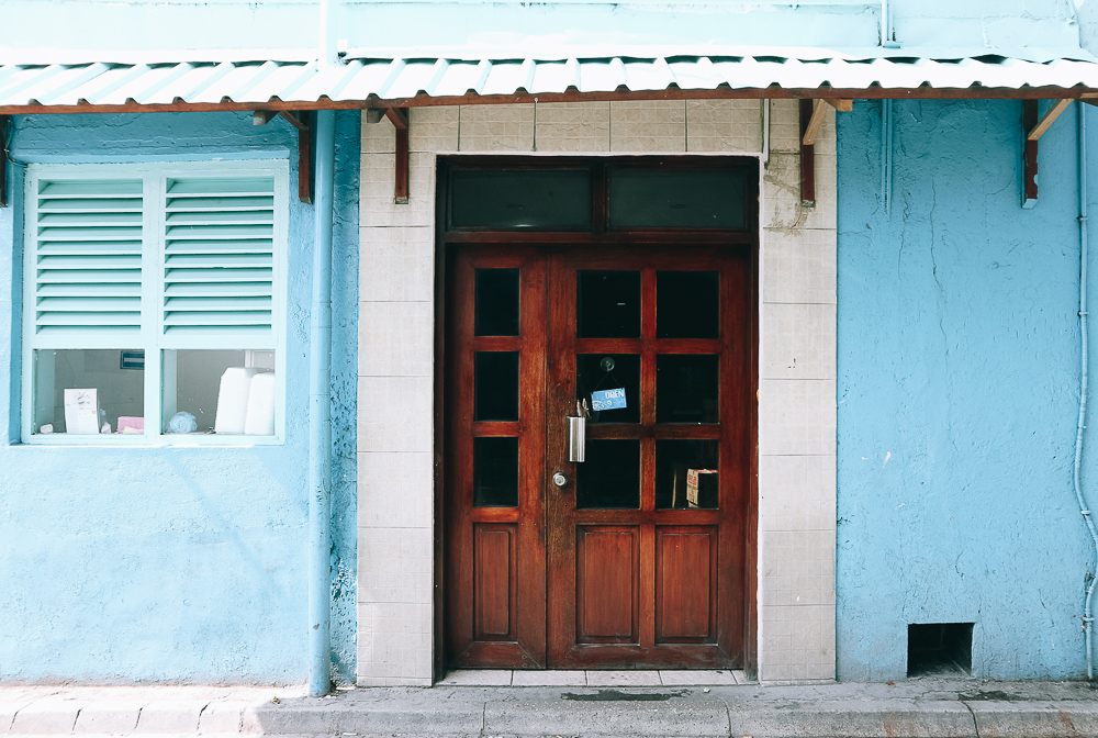 สังเกตุว่าบ้านแต่ละหลังจะมีกำแพงสูงปิดตัวบ้านไว้ และเพ้นท์กำแพงเป็นสีๆจนเหมือนเป็นเอกลักษณ์ของ Local Island ในมัลดีฟส์ ไม่แน่ใจว่าเป็นเรื่องของการป้องกันคลื่นลมทะเลด้วยรึปล่าว แต่ที่แน่ๆคือ เพื่อความเป็นส่วนตัวของชาวมุสลิม เหมือนอย่างที่เวลาออกนอกบ้านแล้วต้องใสผ้าคลุมค่ะ พออยู่ในบ้านถอดผ้าคลุม บ้านก็ต้องปิดมิดชิดเพื่อไม่ให้คนนอกเห็น (เราเข้าใจถูกมั้ยคะ?)