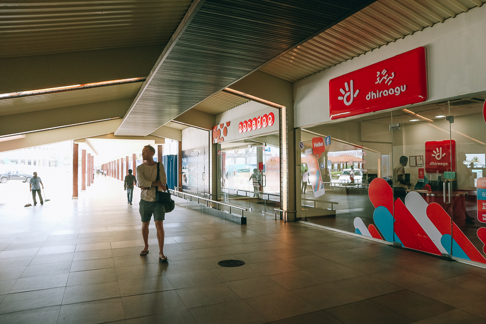 ออกจากประตูสนามบิน จะเจอชอปขายซิมอยู่ 2 เจ้า Oreedoo และ dhiraagu มีคนบอกว่า dhiraagu สัญญาณดีกว่า แต่เราซื้อ Oreedoo เพราะถูกว่า ราคา $11 ได้เนต 2GB เล่นเนตได้อย่างเดียว เท่าที่ใช้ในทะเลก็ไม่ตัดขัดอะไรนะ เช็คอินบน sandbank ได้ก็โอเค อยู่แค่ 3 วันเนตเท่านี้ก็เหลือเฟือแล้ว