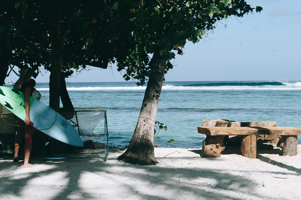กลับมาที่เกาะของเราดังเดิม อย่างที่เราบอกแต่ตอนต้นว่า เลือกมาเกาะนี้เพราะเป็นสวรรค์ของ surfer มีจุดเซิร์ฟที่ดีที่สุดจุดหนึ่งในมัลดีฟส์ ชื่อว่า Coke Beach และอีกหลายจุดใกล้ๆกัน บริเวณชายหาดเลยมีหนุ่มๆสาวๆ ถือเซิร์ฟบอร์ดเดินไปเดินมา เท่ชะมัด