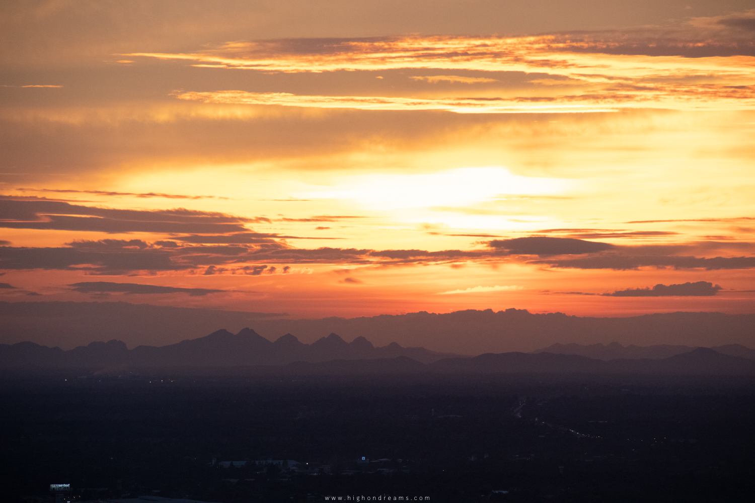 เราเลือกจุดชมพระอาทิตย์ตกที่ผาชมเมืองณวนอุทยานบัวบานที่นี่เป็นสันหน้าผาหินยาวๆตอนเดินอาจต้องระวังหน่อยหลังจากพระอาทิตย์ตกแล้วแนะนำให้อยู่รอตอนเมืองเปิดไฟกับท้องฟ้าสีทไวไลท์คืองามอีหลีฟ้าระเบิดเป็นสีม่วงถ้าได้มาดูกับผู้ชายมันคงจะโรแมนติกมากแน่ๆ