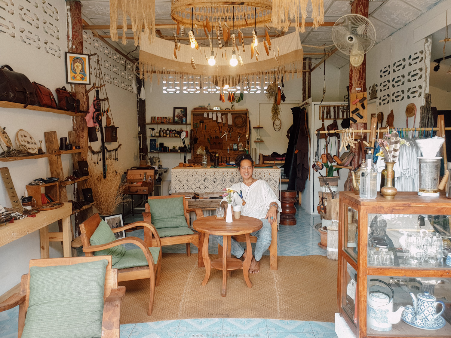 ก่อนกลับแวะร้าน HANDCRAFT หาของฝากกลับบ้าน เป็นร้านของพี่ขุนที่บังเอิญเจอที่ Art in Chai วันก่อน พี่ขุนทำเครื่องหนัง กระเป๋า เครื่องประดับ ใครสนใจ มาเที่ยวปายแวะมาอุดหนุนกันได้ ให้ตำแหน่งพ่อค้าที่หล่อที่สุดในปายเลย คนนี้ 555