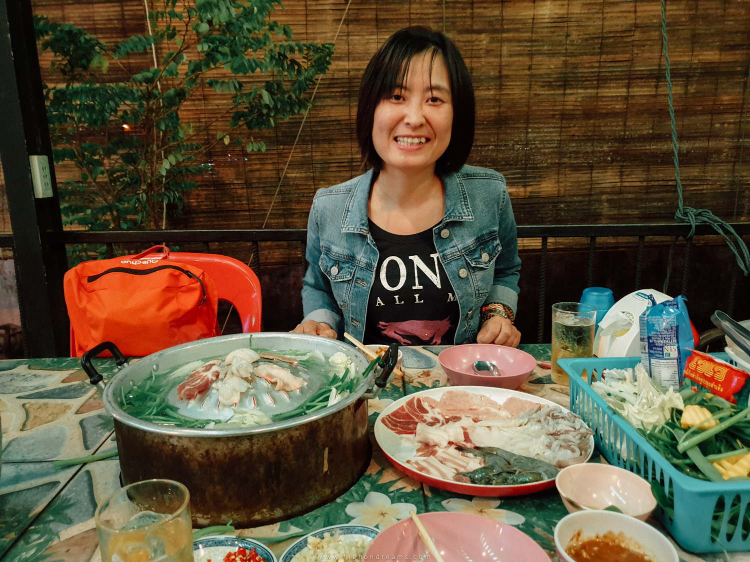 พอกลับโฮสเทลเจอรูมเมทเป็นสาวชาวจีนเที่ยวคนเดียว เลยชวนไปกินหมูกระทะกัน หรือที่ลาวจะเรียกว่า ซิ้นดาด แนะนำให้สั่งนมย่างอ่ะ อร่อยมากๆ ที่ไทยไม่ค่อยมีเมนูหมูส่วนนมเท่าไหร่ นิ่มๆ นัวๆ ดี ชอบมาก