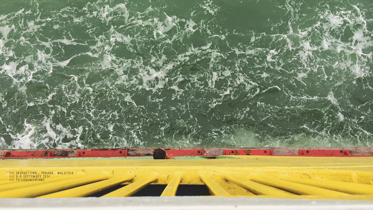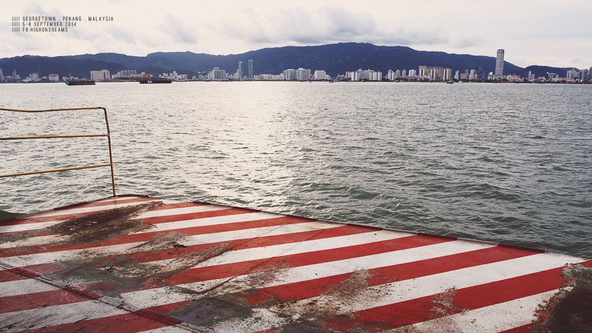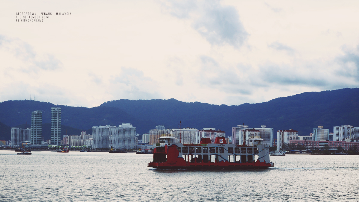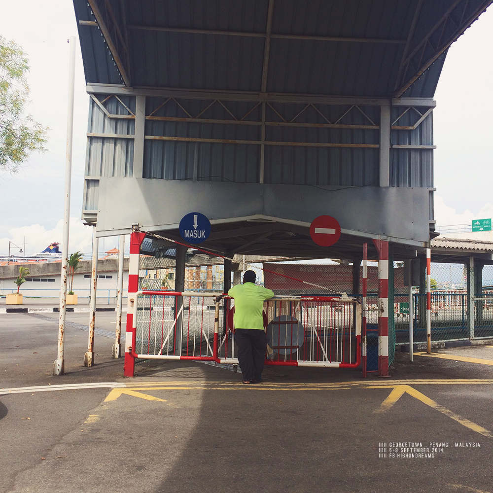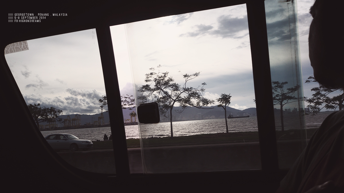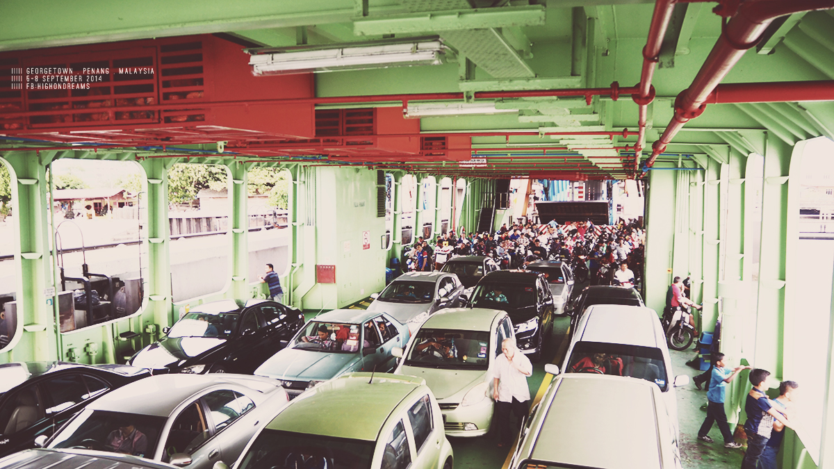 ข้ามเกาะ เราบอกพี่คนขับว่าจะลงฝั่งจอร์จทาวน์ ในใจนี่กะว่าจะได้นั่งรถข้ามสะพานปีนังแหละ แต่ที่ไหนได้ คุณพี่ก็เอารถตู้ขึ้นเรือข้ามเกาะ – -“