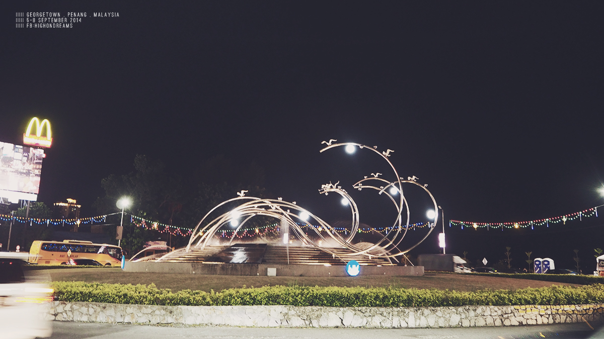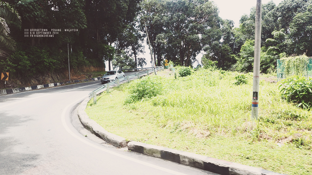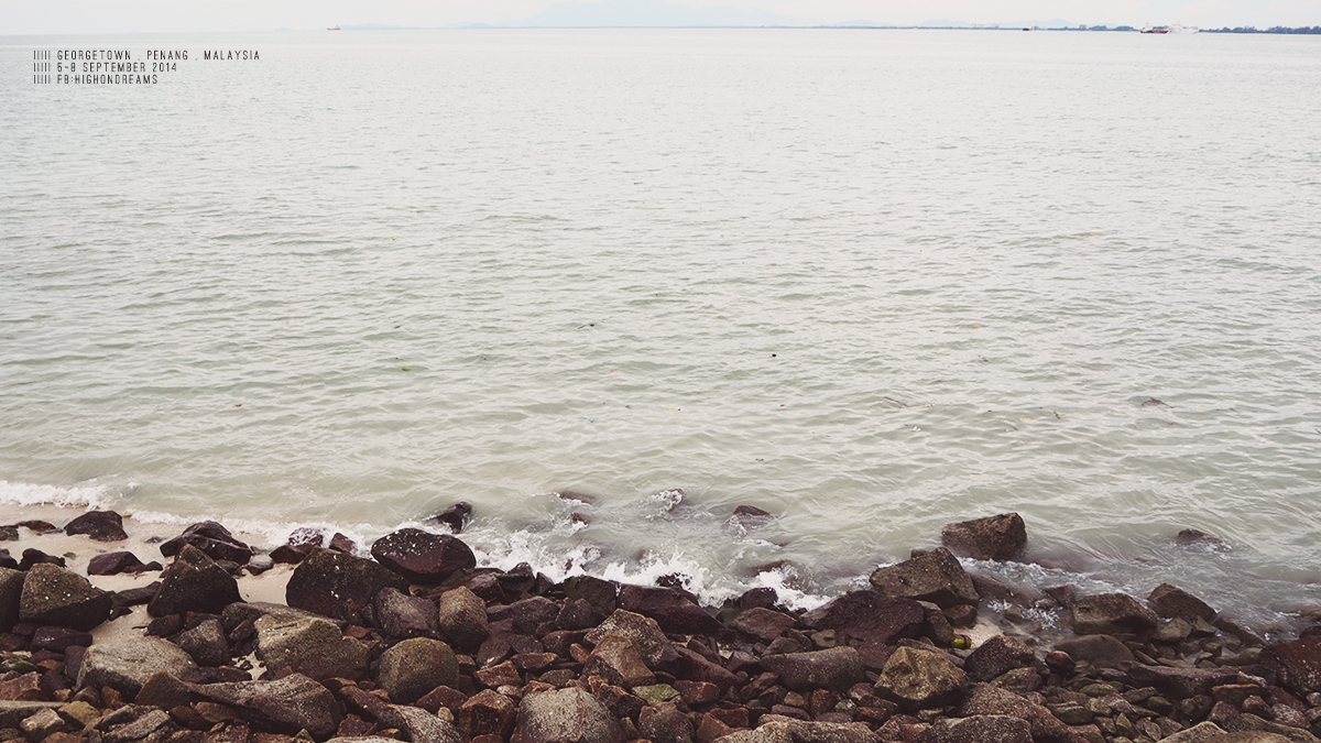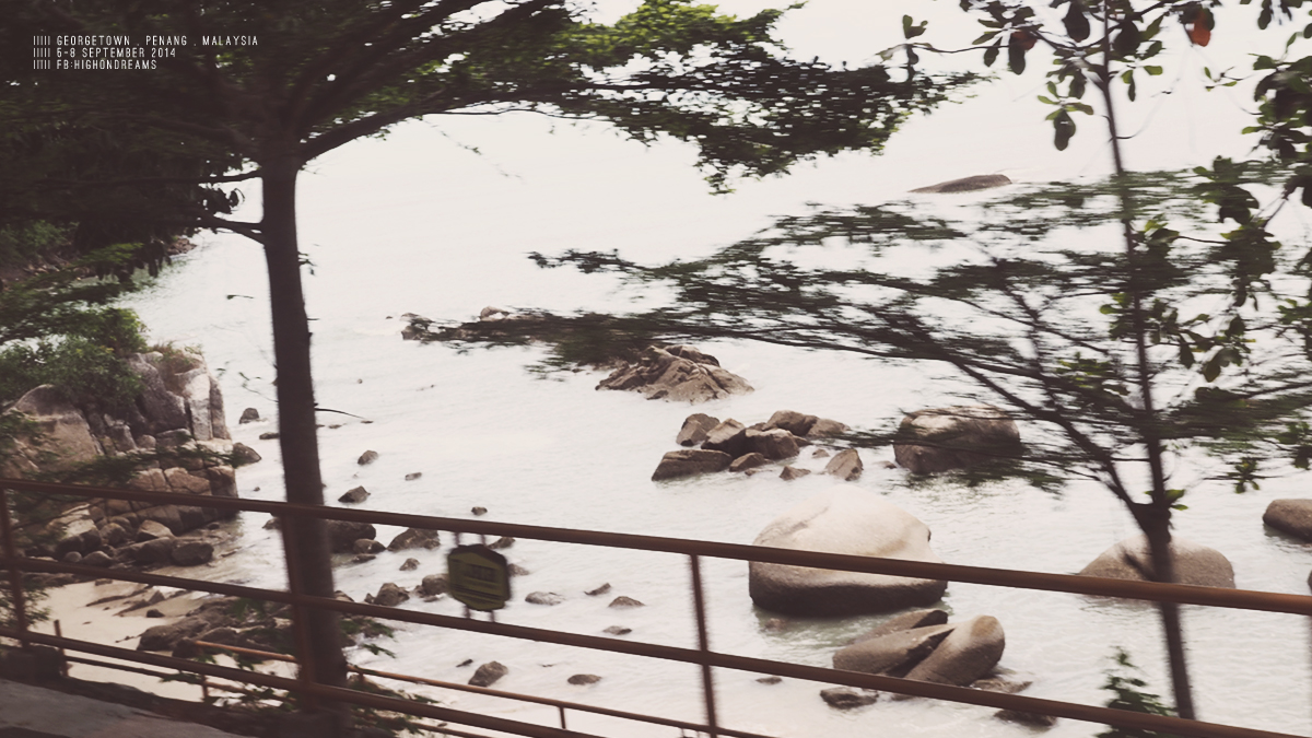 ระหว่างทางเป็นทางขึ้นเขา จะขี่มอไซด์มาก็ได้ แต่ยากอยู่ เรียบชายฝั่งทะเลส่วนใหญ่เป็นหิน มีคนเล่นน้ำบ้างปะปราย และตลอดทางจะมีโรงแรมหรูๆ คอนโดสูงๆ แย่งวิวริมทะเลกัน เหมือนมันเป็นเมืองตากอากาศของไฮโซมาเลเซียไงไม่รู้ ต่างจากโซนเมืองเก่าลิบลับ (ก็แน่สิ – -“) นั่งๆนอนๆไป แป๊ปเดียวก็ถึง