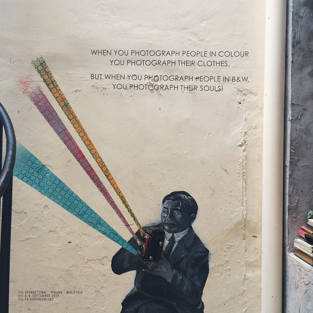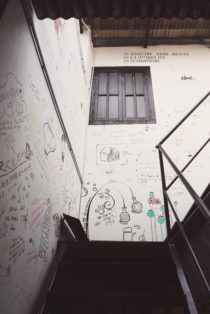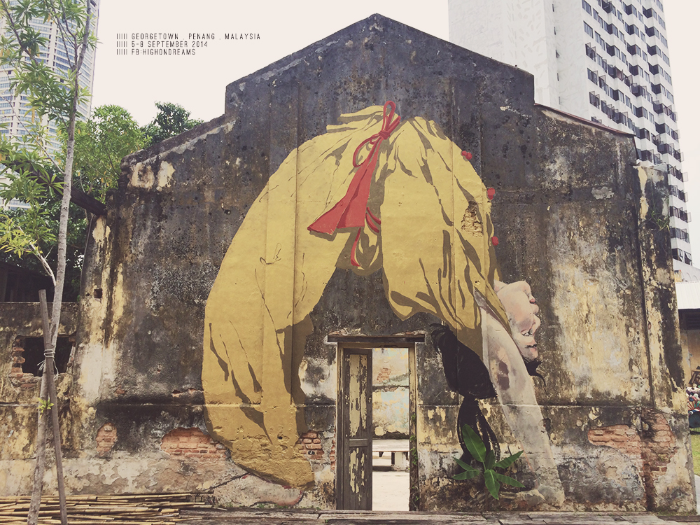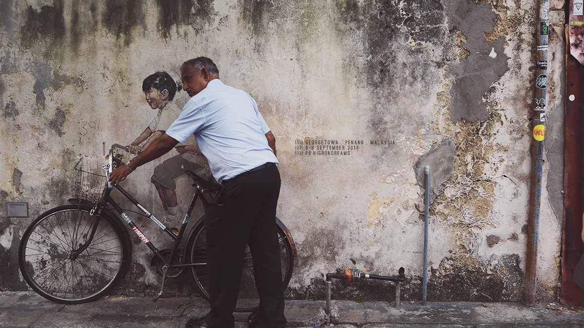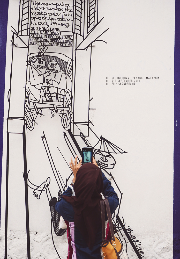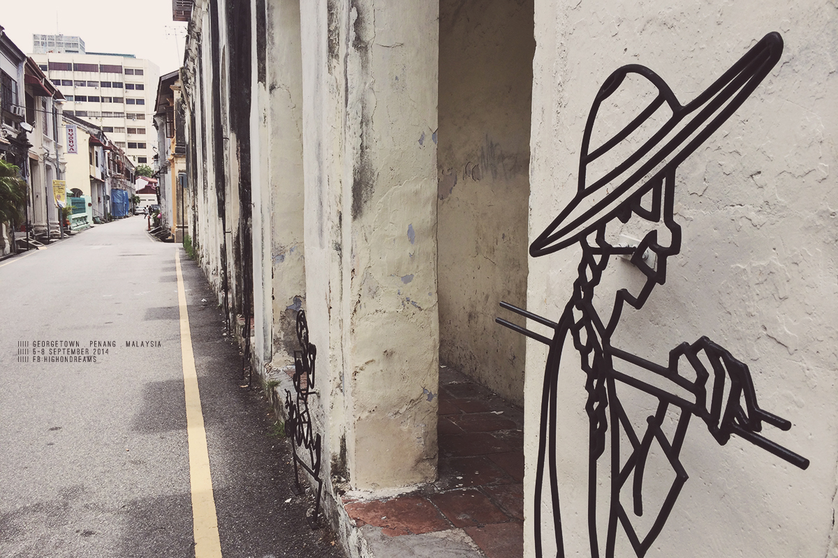 สังเกตนะ พวก wall art ที่นี่จะมีแบบวาดๆ ละก็แบบเหล็กดัด แบบวาดแต่ละงานจะมีความหมายของมันเอง ซึ่งในโปรเจคแรกของพี่เออเนส คือโปรเจค Mirrors George Town ตอนนี้ในย่านเมืองเก่า มีหลากหลายศิลปินเข้ามาวาดเพิ่มเรื่อยๆ