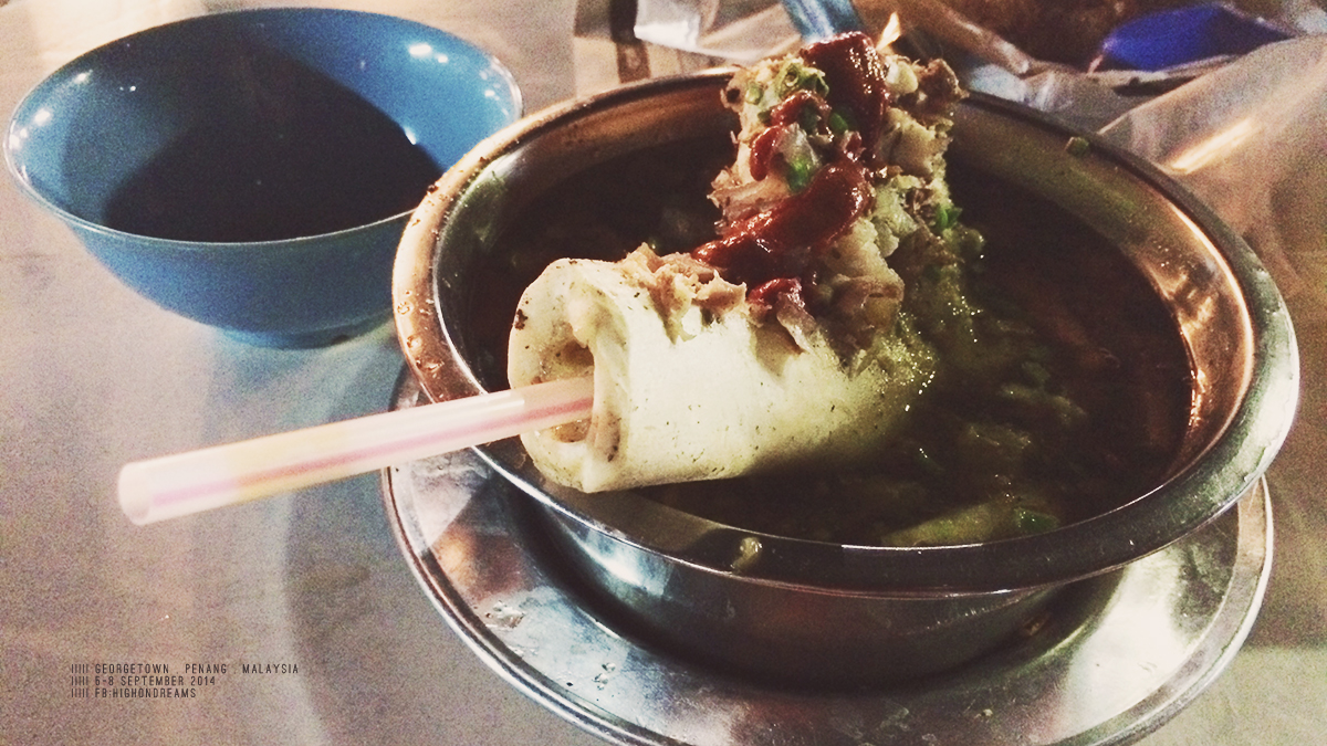 Lak sa (Famous Penang Local food) 4RM หลักซา เป็นประมาณเส้นๆกับน้ำซุปปลา มีน้ำจิ้มใส่ช้อนมาด้วย แหม่ ดูพิถีพิถันในการกิน กุจะซดน้ำชิมก็ไม่ได้ ต้องเทน้ำจิ้มก่อน ตอนแรกขอเค้าเพิ่มปลาหมึกลงไปด้วยได้มั๊ย เค้าดันไม่ให้ (หรือเราพูดไม่รู้เรืองก็ไม่แน่ใจ) 5555 ถ้าจะให้อธิบายคำแรกที่ได้ลิ้มรส นี่มันก๋วยจั๊บ+แกงส้ม+ขนมจีนน้ำยาป่าใส่ปลาร้านี่หว่า!!!!! คหสต นะ เรากินคำเดียวแล้วจอดเลยค่ะ