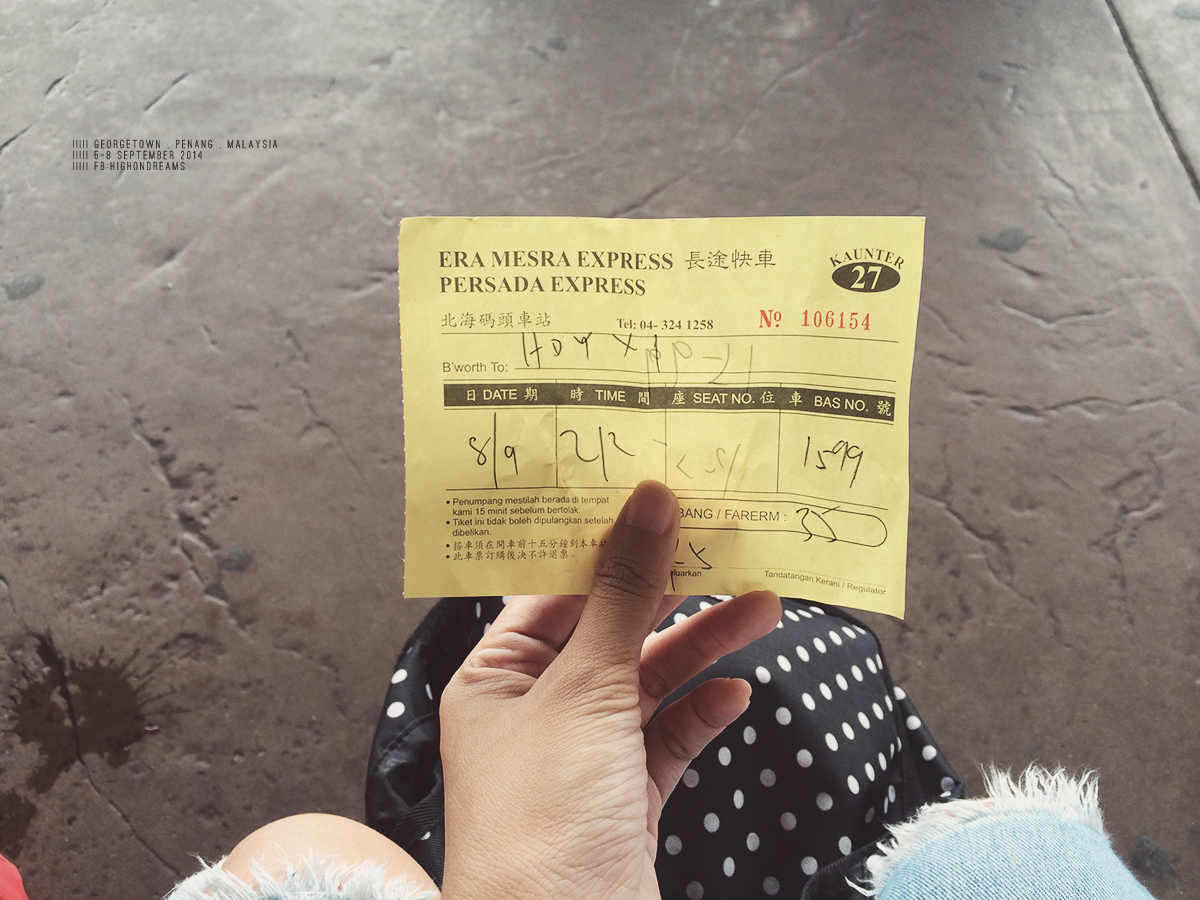 มาถึงBus Station ก่อนเวลาครึ่งชั่วโมง นั่งรอนานนน จนกลัวว่าตั๋วที่ซื้อมาเป็นตั๋วปลอม เดินไปถามแล้วถามอีก ล๊กมาก เหมือนนักท่องเที่ยวตื่นตูม จนมีลุงคนนึงเดินมาถาม พูดไทยด้วย เพราะเห็นว่าเราไปหาดใหญ่