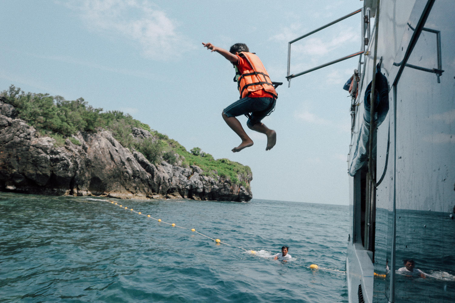 ได้เวลาเริ่มทริปที่รอคอย เกาะร้านเป็ด เกาะร้านไก่ เรือสปีทโบ้ทออก 8 โมงเช้า ใช้เวลาประมาณ 40-60 นาที จะไปถึงเกาะ แล้วแต่คลื่นลมด้วยนะ ตอนเราไปคลื่นแรง ใช้เวลาเกือบชั่วโมงน่ะ เรือไม่ได้ออกทุกวัน ขึ้นอยู่กับคนจองและคลื่นลม ลองติดต่อกับทางลางเบิดทัวร์เอาเด้อ