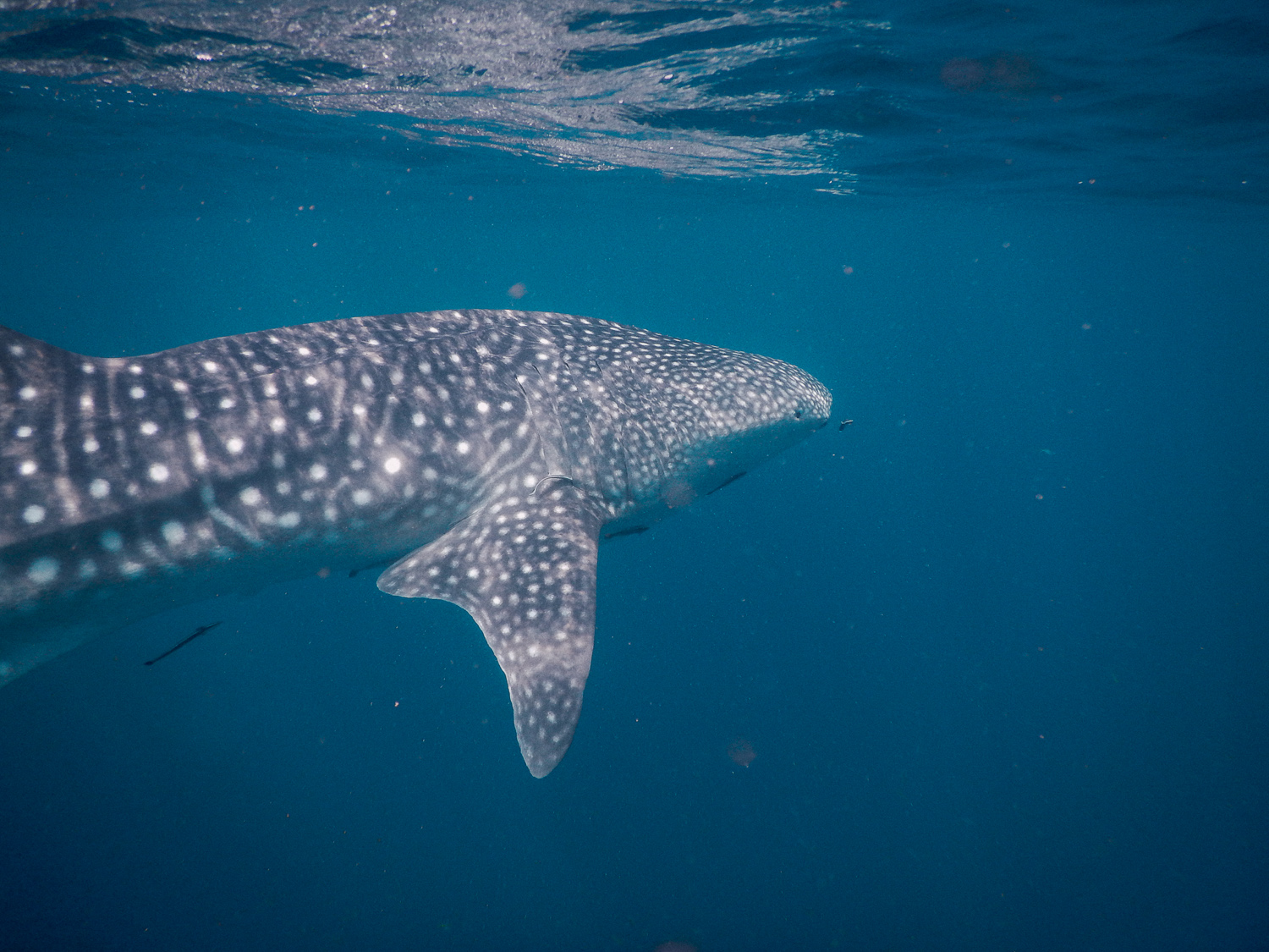 ฉลามวาฬในย่านนี้เค้าว่ามีอยู่ 2 ตัวหลักๆ มีชื่อด้วย คือมะลิและพริกไทย วันที่เราไปก็เจอแค่แม่มะลิตัวเดียว มะลิจะตัวใหญ่กว่ากว่าพริกไทยนะ