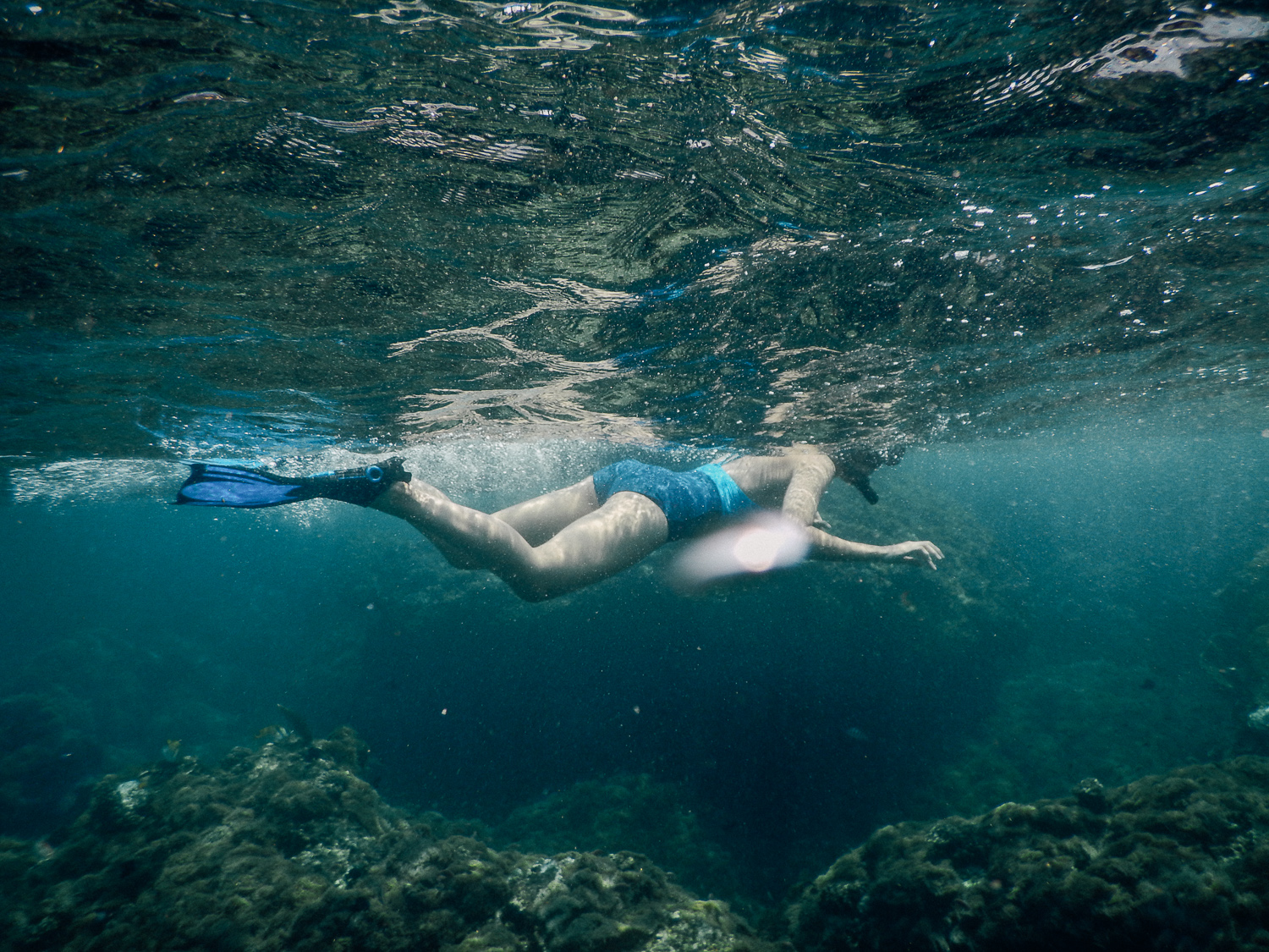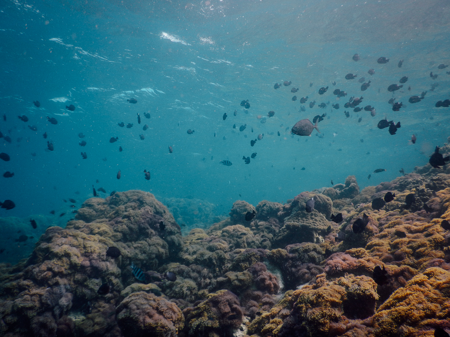 โชคดีที่ครั้งนี้เราได้เจอ ไกด์ก็อยู่รอด้วยกันตลอดดำน้ำรออยู่นาน วนเวียนไปมาจนเหนื่อย ดีที่ปะการังและปลาที่นี่คือชุกชุมมากๆ ทำให้การรอไม่น่าเบื่อ และถึงจะไม่เจอน้องจุดก็ไม่เสียดายเท่าไหร่ เพราะใต้ท้องทะเลที่นี่สมบูรณ์จริงๆ แถมยังมีแพลนตอนเยอะ น้องจุดถึงเข้ามาเองบ่อยๆไง