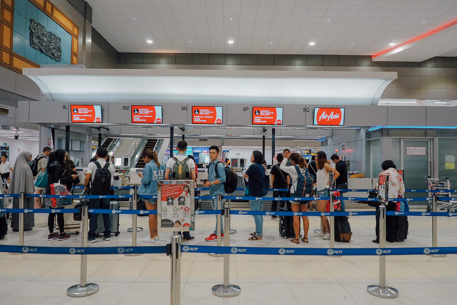 แล้วตอนนี้ ที่เค้าเตอร์แอร์เอเชียเริ่มเปลี่ยนให้ทุกคนบริการตัวเองละนะ เราต้องไปที่ตู้อัตโนมัต แล้วเช็คอิน ปริ๊นตั๋ว ปริ๊นแท๊กโหลดกระเป๋ าเอง เอาไปที่ช่องโหลดกระเป๋า ชั่งเอง สแกนเอง ส่งกระเป๋าไปเอง ตอนแรกๆมันจะรู้สึกว่าวุ่นวายจังเลย แต่เค้ามีพนักงานช่วยทำให้ทุกขั้นตอนเลย พอมาครั้งต่อไปเราทำ ได้ทำเองทุกอย่างก็พบว่ามันเร็วขึ้นมาก แล้วถ้าทุกคนทำได้เหมือนกันมันจะเร็วกว่านี้อีก