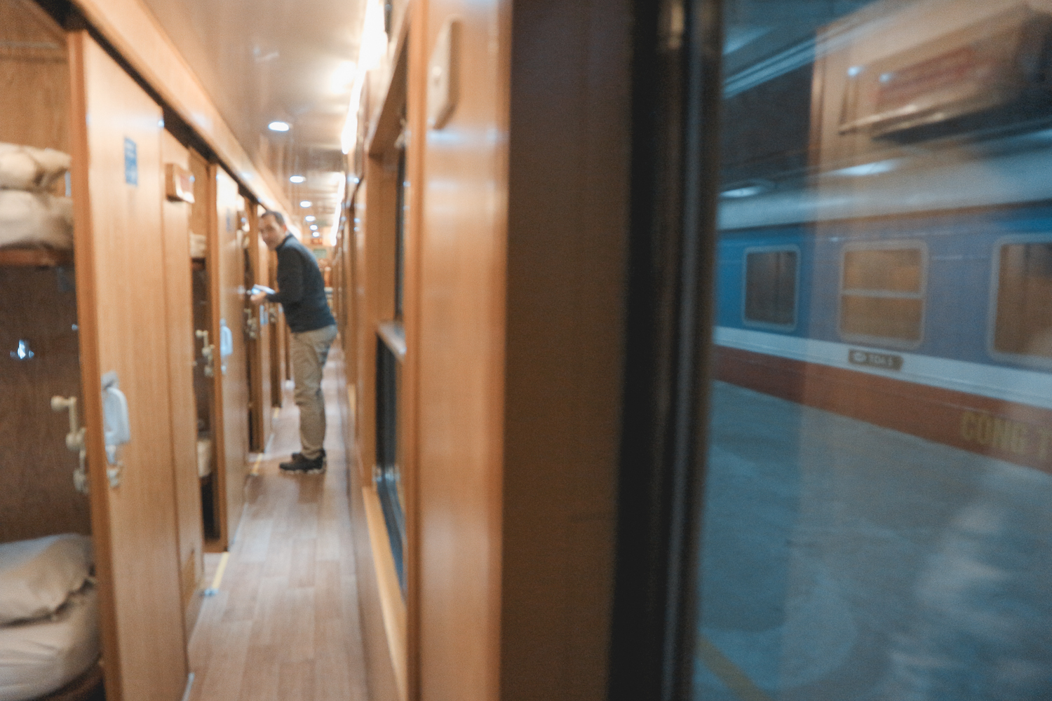 รถไฟของเราเป็นของบริษัท Sapaly ราคา $42 ต่อเตียง เป็นแบบแชร์ห้อง 4 เตียง ถ้ามาคนเดียวก็จะได้นอนกับใครก็ไม่รู้ 555 ถ้ามา 4 คนจะพอดีได้นอนห้องเดียวกัน รถไฟออก 4 ทุ่มตรง ตรงเวลามากๆค่ะ และให้คนเข้าไปนั่งก่อน 1 ชั่วโมง เราเลือกบริษัทนี้เพราะอ่านรีวิวจาก Tripadviser เค้าบอกเป็นตู้ใหม่ ราคาสูงกว่าอันอื่นนิดเดียว